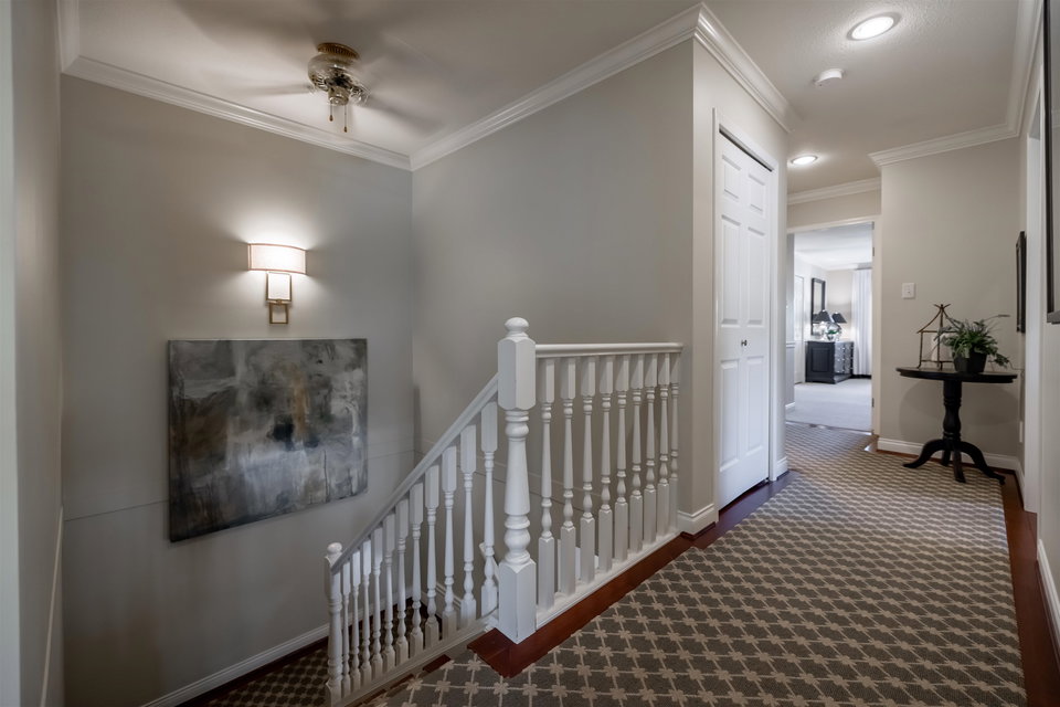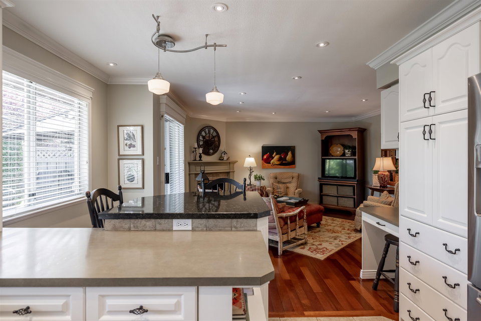 Welcome to Lakewood Place and this 3-bedroom end-unit townhome featuring nearly 2400 sq.ft of thoughtfully renovated living space over two storeys. The cohesive design beautifully links living, dining, family, and eating areas on the main level, along with a kitchen featuring stainless steel appliances inc. gas range. Upstairs you’ll find three generous bedrooms inc. a stunning primary suite. Enjoy indoor/outdoor living in the mature yard, which opens to your view of the pond. There’s even a side-by-side double car garage. The central location provides excellent access to everything you could need, as well as three highways and the US border. See the neighbourhood and the home in the virtual tour URL. Reach out today, professionally designed homes like these are rarely available.