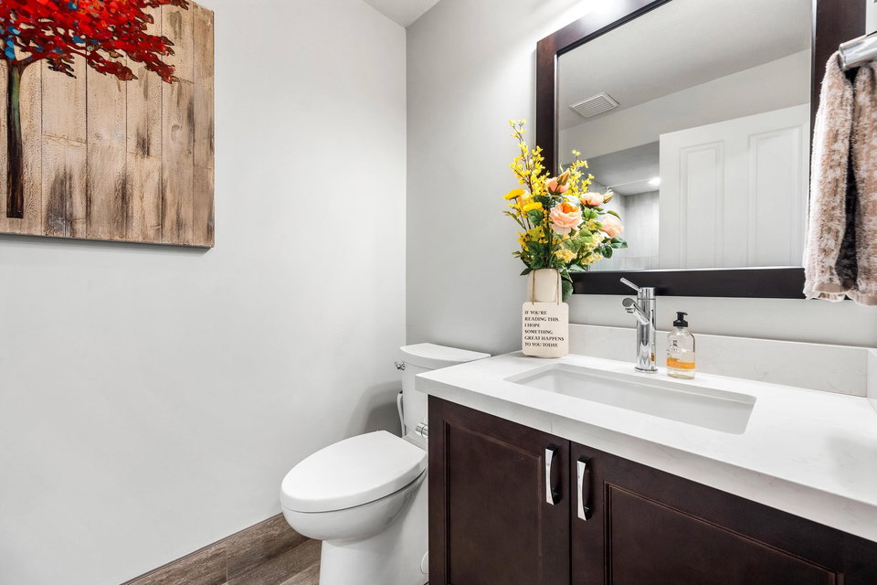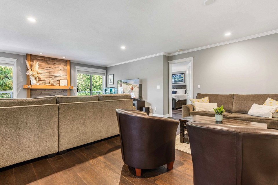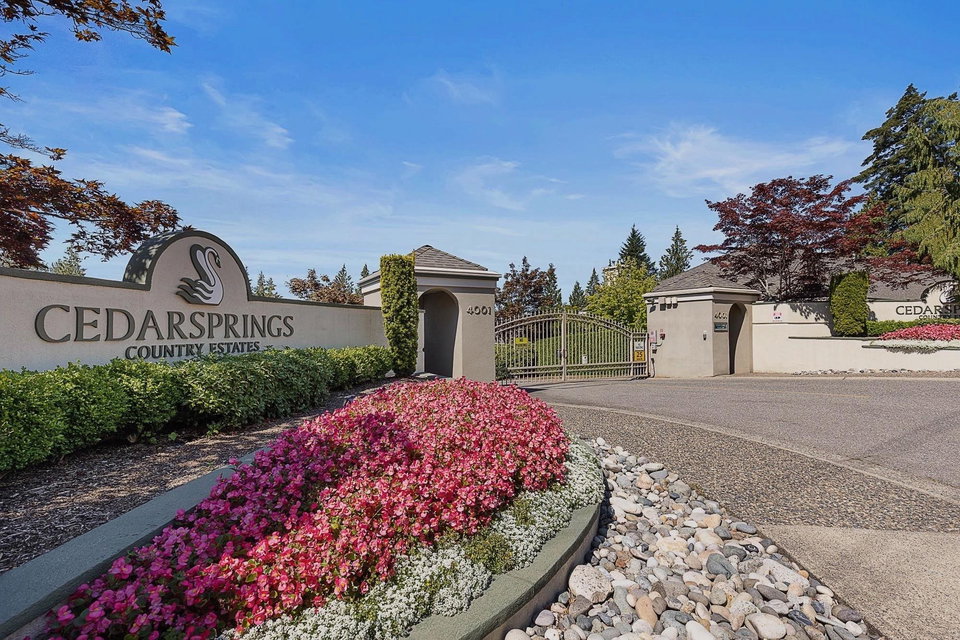 This stunning home in the gated Cedar Springs community offers over 3,000 square feet of spacious living space, featuring a bright country kitchen with stainless steel appliances, a cozy living room with a gas fireplace, and a spacious main-floor master suite with a spa-like ensuite. Backing onto a peaceful greenbelt, this corner unit is filled with natural light and boasts a welcoming open-concept design, perfect for entertaining. The lower level includes two additional bedrooms, a 4-piece bathroom, and a large rec room, enhancing its versatility. Access to community amenities like an indoor pool and walking trails, this meticulously maintained home is ideal for families seeking a tranquil yet vibrant lifestyle.