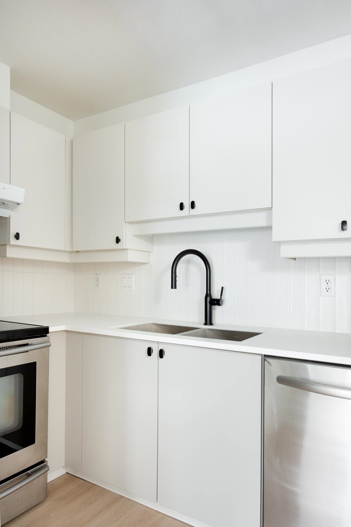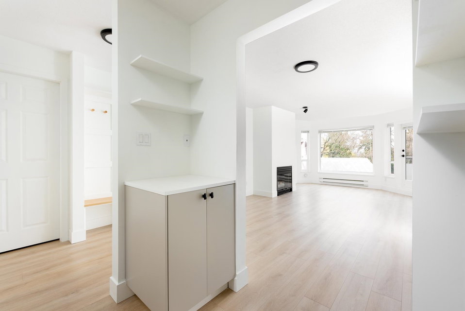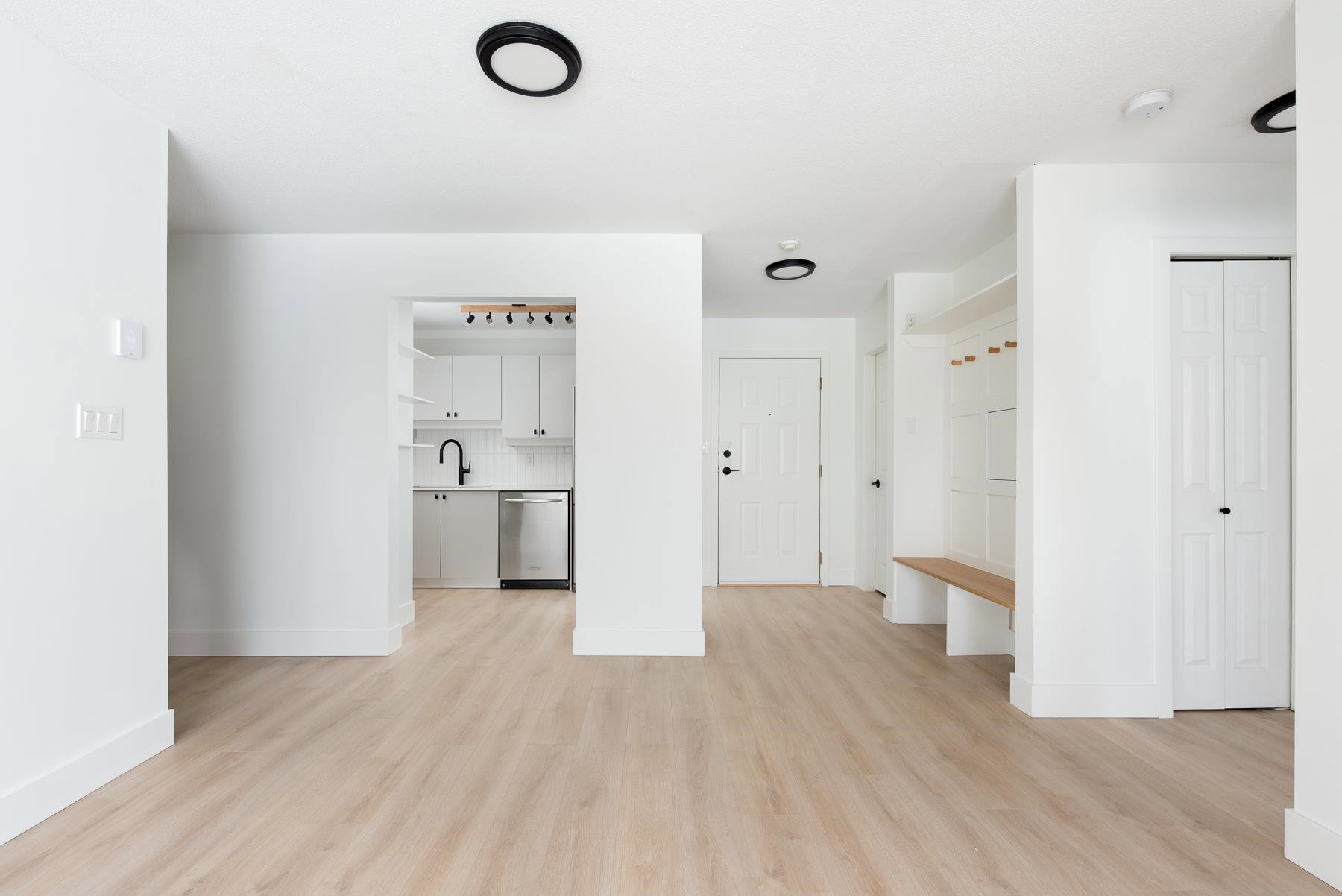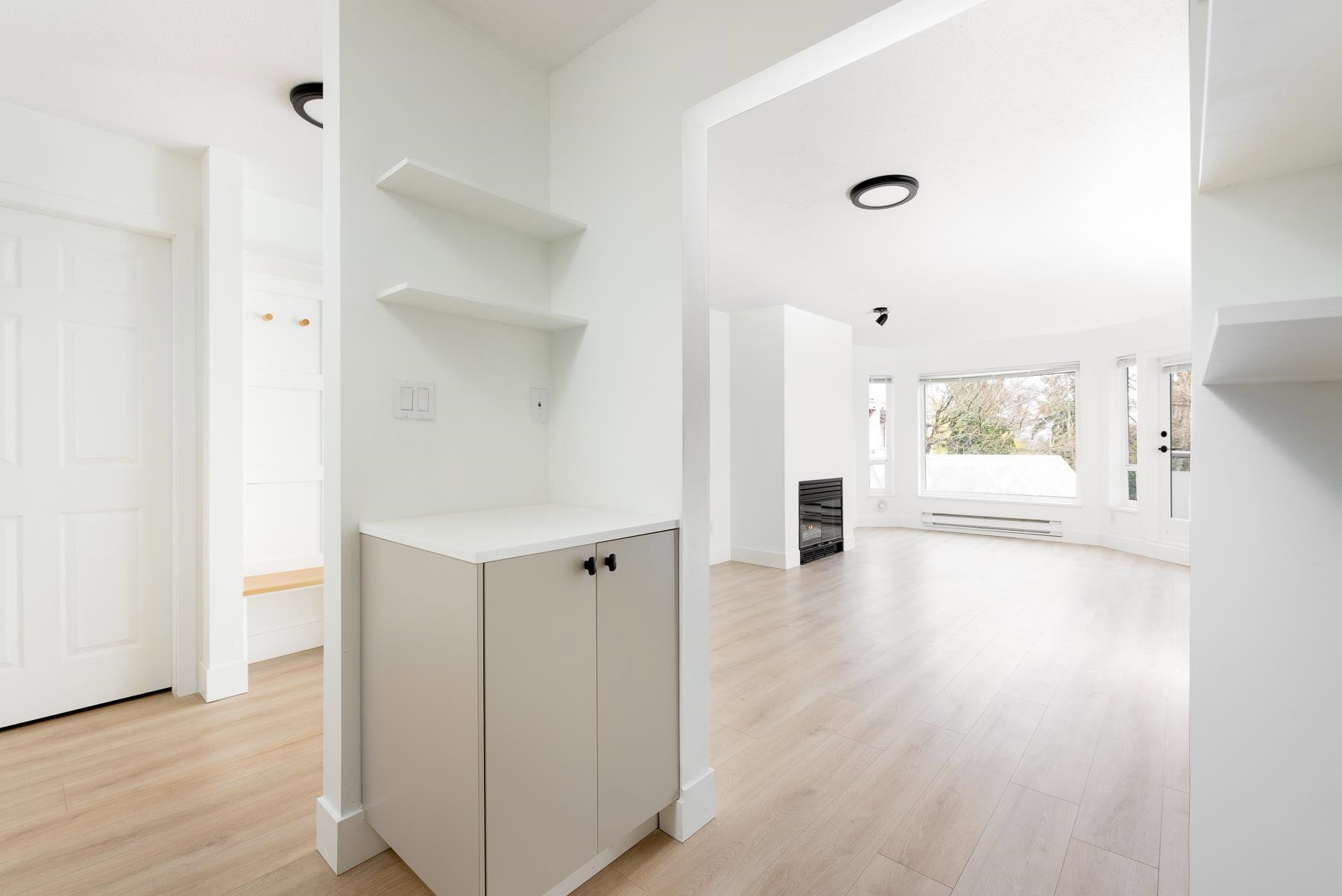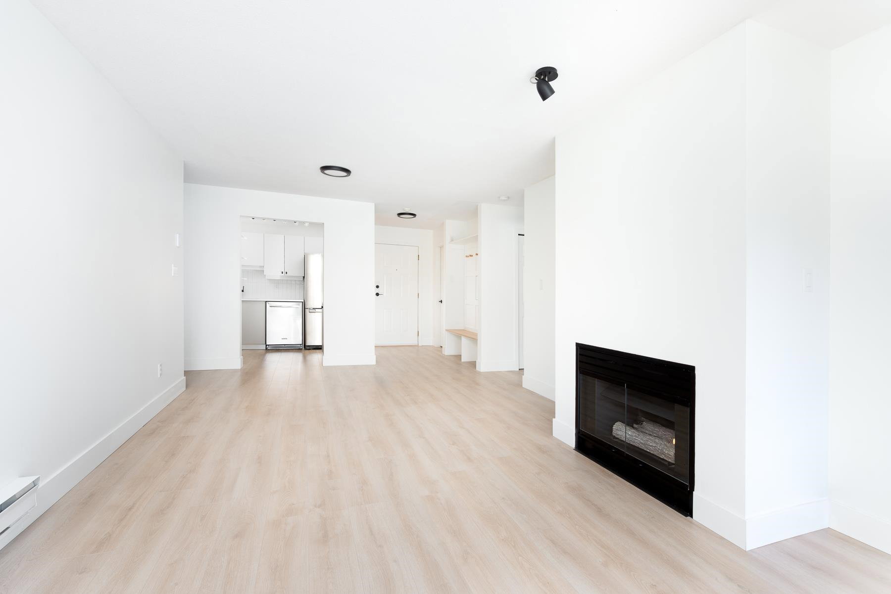 Light and bright, this gorgeous home has been recently renovated featuring new floors, updated kitchen, light fixtures, and the cutest, most instagrammable foyer (with panels that open to reveal hidden cable/internet hookups.) The most desirable 2 bed floor plan – bedrooms on opposite ends of the home(no shared walls, please and thank you!). Huge master bedroom with twin closets and ensuite. Living room has been pre-wired for your TV and consoles above the gas fireplace. Laundry room doubles as in-suite storage or mud room. Large, BBQ-friendly balcony. Pets allowed, rentals allowed, well-run building with low strata fees. Additional parking available to rent. Your new home is waiting, don’t sleep on this one!