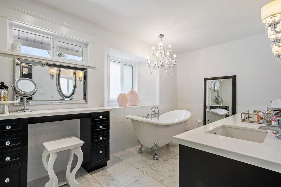 SEE VIRTUAL TOUR! Your wait is finally over! Welcome to this turn-key show home in one of Langley’s desired areas, Brookswood! This 4 bed, 4 bath home is a designer’s dream come true. It comes complete with just over 3400 sqft of living space. Fully renovated from head to toe! Interior reno was done in 2015, exterior in 2021/2022. New plumbing (PEX), furnace, windows, AC, exterior Hardi siding on all sides of both structures, and a new roof, just to name a few. The main floor features an office, mudroom, great entertaining spaces inside and outside! The (Pubshed) has heat, 2 pc bathroom, great for someone who works from home or a bonus living space. Hot tub, with adjacent sun deck. Jaw dropping ensuite has 8′ shower, claw foot tub, his and her sinks and a large Walk-in closet!