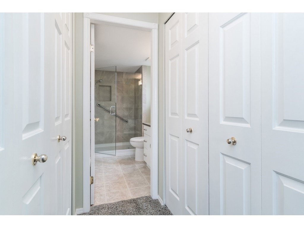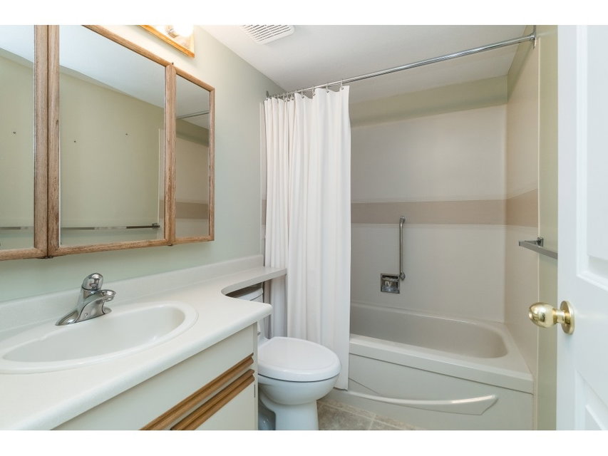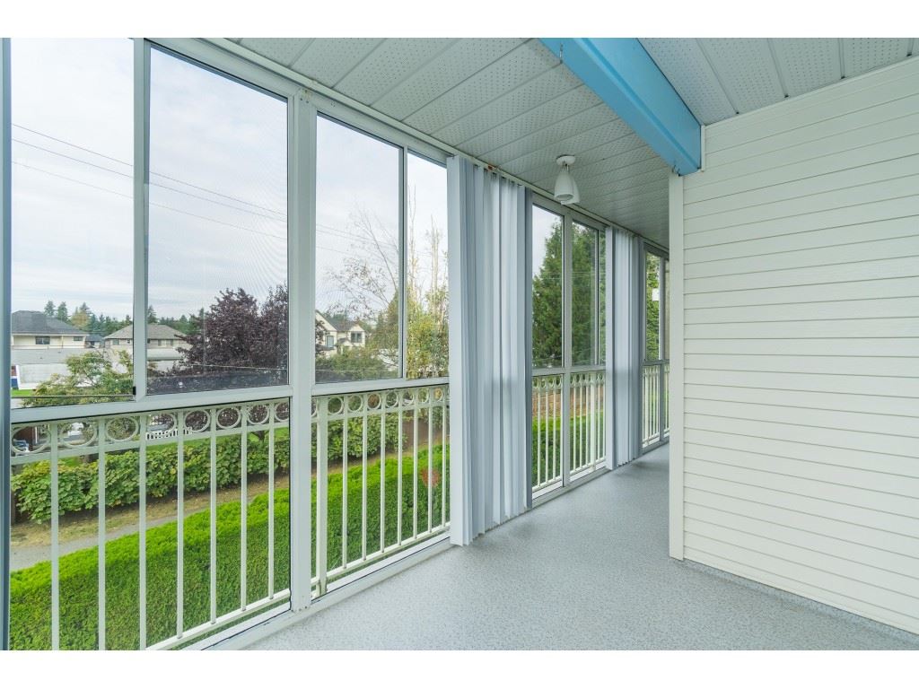 ROYAL COURT… a well managed building in a great location providing wonderful community living for 55+. This 2 bdrm + 2 bath unit has a bright & spacious feel. Features include a large kitchen w/eating area & built-in china cabinet, open layout for living & dining areas, completely updated master ensuite, laundry room w/storage, and glass enclosed patio space with privacy blinds for year round enjoyment. Additional storage is conveniently provided on the same floor as the unit. Amenities include secure underground parking, workshop and recreation/games room. Pets and rentals are not permitted. Excellent Clearbrook location close to shopping, dining & recreation. Call today for your private tour.