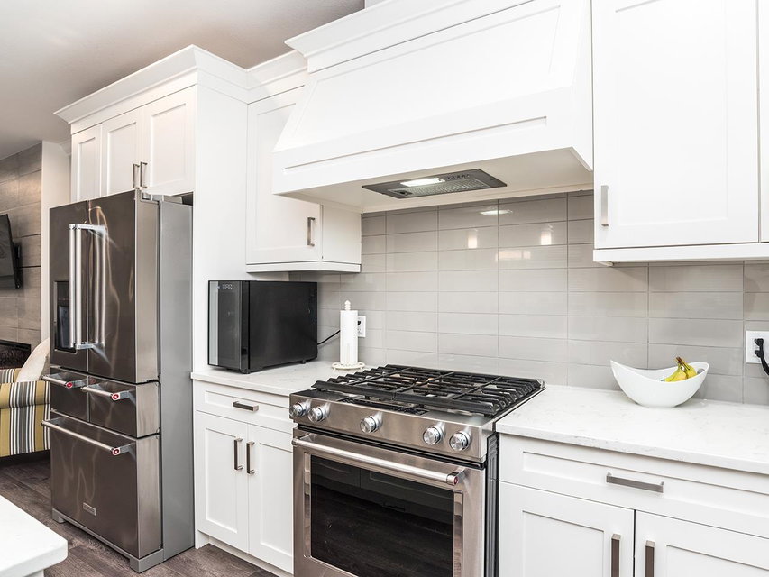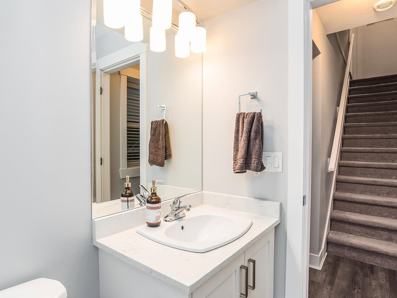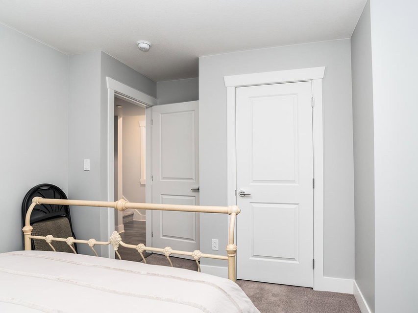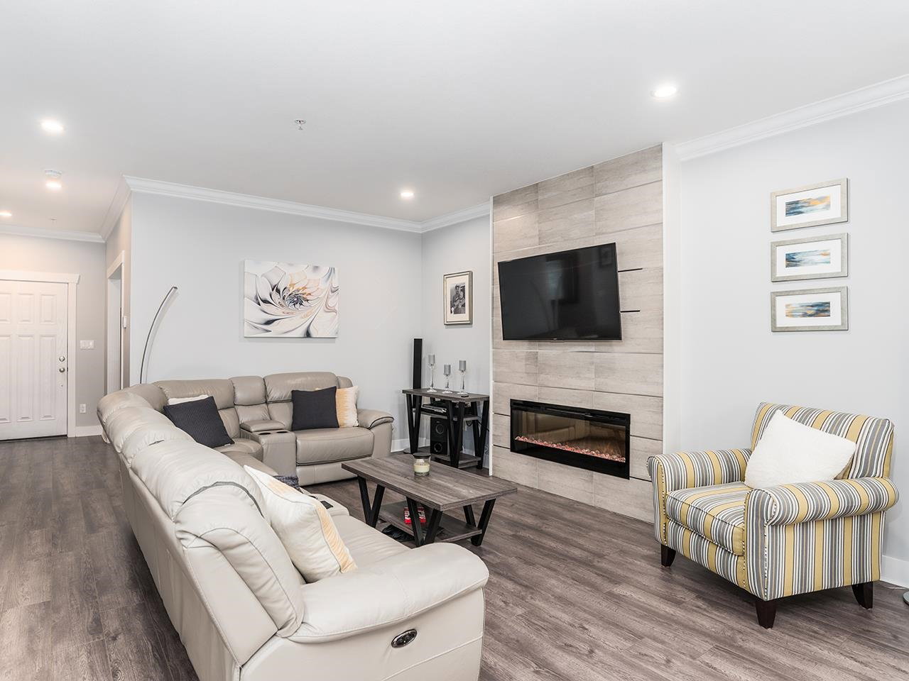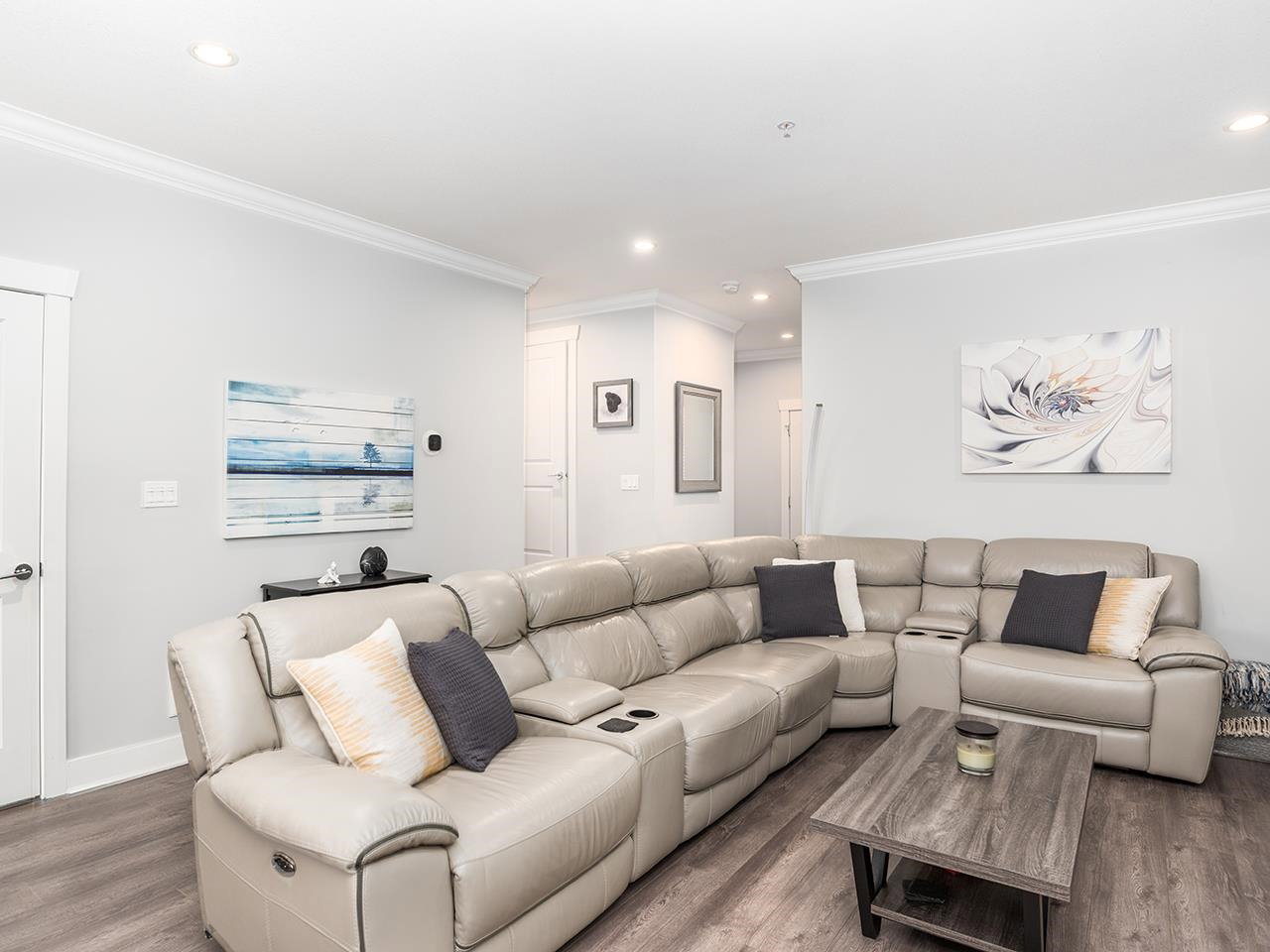 The Popular Ambiance Row Home (no strata fees). This Luxurious 4 bed 4 bath END unit offers an attached double garage plus 2 parking on pad. Open modern great room style with bright White cabinets, oversized island with Quartz counters. Upgraded stainless appliances, large pantry, spacious eating area. Great room offers 9 ft ceilings modern fireplace and Den/office. Finshed off with Laminate flooring and crown mouldings. 3 beds, laundry, open office area up. Master bedroom has vaulted ceiling, walk-in closet and spa like ensuite w/ soaker tub. Basement has Rec/Media room plus 4th bed and bath. Entertainers deck w/ Gas FP for cool evenings. Upscale features include garage floor coating, tankless hot water system, air conditioning, S.system. Just the perfect place to call home.