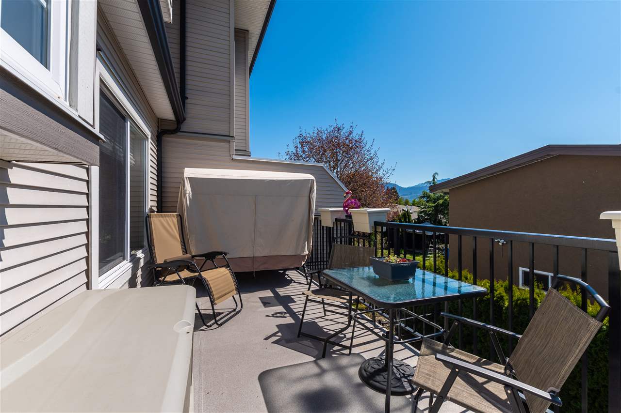 Welcome to this stunning END UNIT townhouse with 3 bedrooms 3 bathrooms lots of NATURAL LIGHT and a gorgeous OVERSIZED YARD that is fully fenced for your PRIVACY. Step inside and see the PRIDE OF OWNERSHIP and enjoy everything this home has to offer with a great layout, freshly painted and spectacular VIEWS from your patio of Mount Cheam. Main floor has a great open kitchen with separate eating area, powder room, large living room and dining room that leads you to your private deck. The complex has been very well taken care of and just recently had the exterior painted. This end unit gives you extras like natural light a larger square footage and a DOUBLE GARAGE with parking in the driveway for 2 more cars and it is located on a cul de sac road with a park. This is VALUE PACKED at $499,900