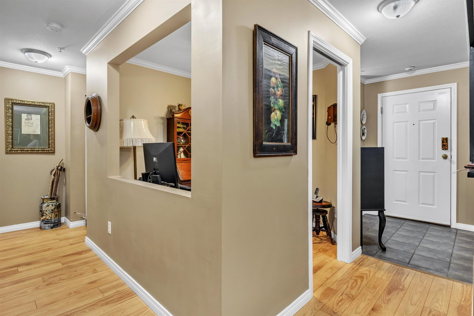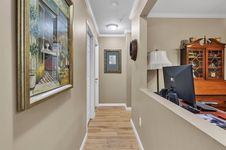 Updated 2 Bedroom PLUS Den/Office, 2 Bathroom home in a super CENTRAL location! In the Ever popular Green Gables!~ Kitchen is spacious, open to lovely Lvgrm w/FP. WRAP around balcony for plants & sitting area to enjoy!~ Primary Bdrm is huge w/custom cabinets in closet, 3 piece en suite. Home has Gorgeous custom drapery, lighting, new laminate flooring, paint & blinds. Den is a great size, open to lvgrm. Full Sized Laundry Room! Storage Locker also comes w/unit. All of this in a Super Central location, walk to shops, restaurants & more! Building received a new building envelope in 2019, complete rainscreen, new cladding, windows, balconies & siding! Building also has guest suite & workshop! All ages welcome. Cat welcome. Rentals allowed. Book your private showing!~