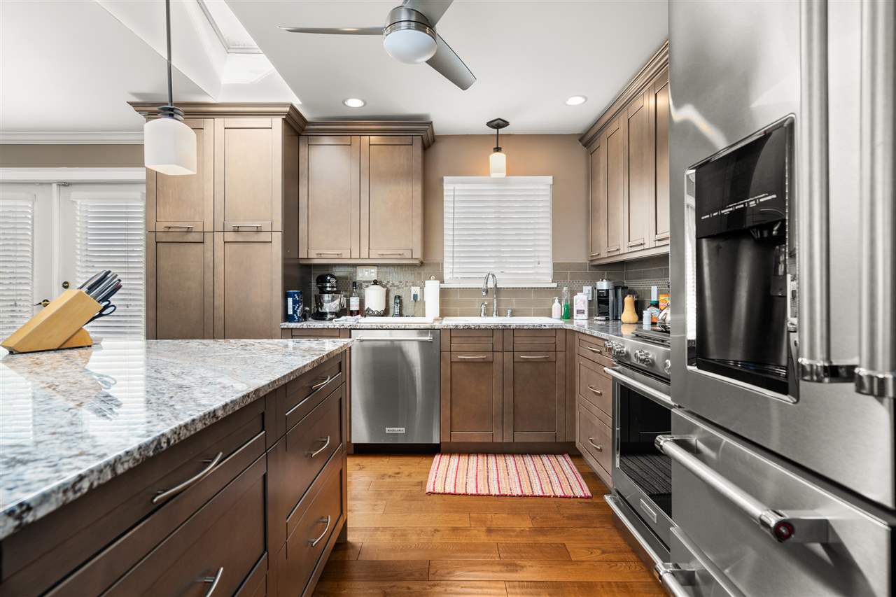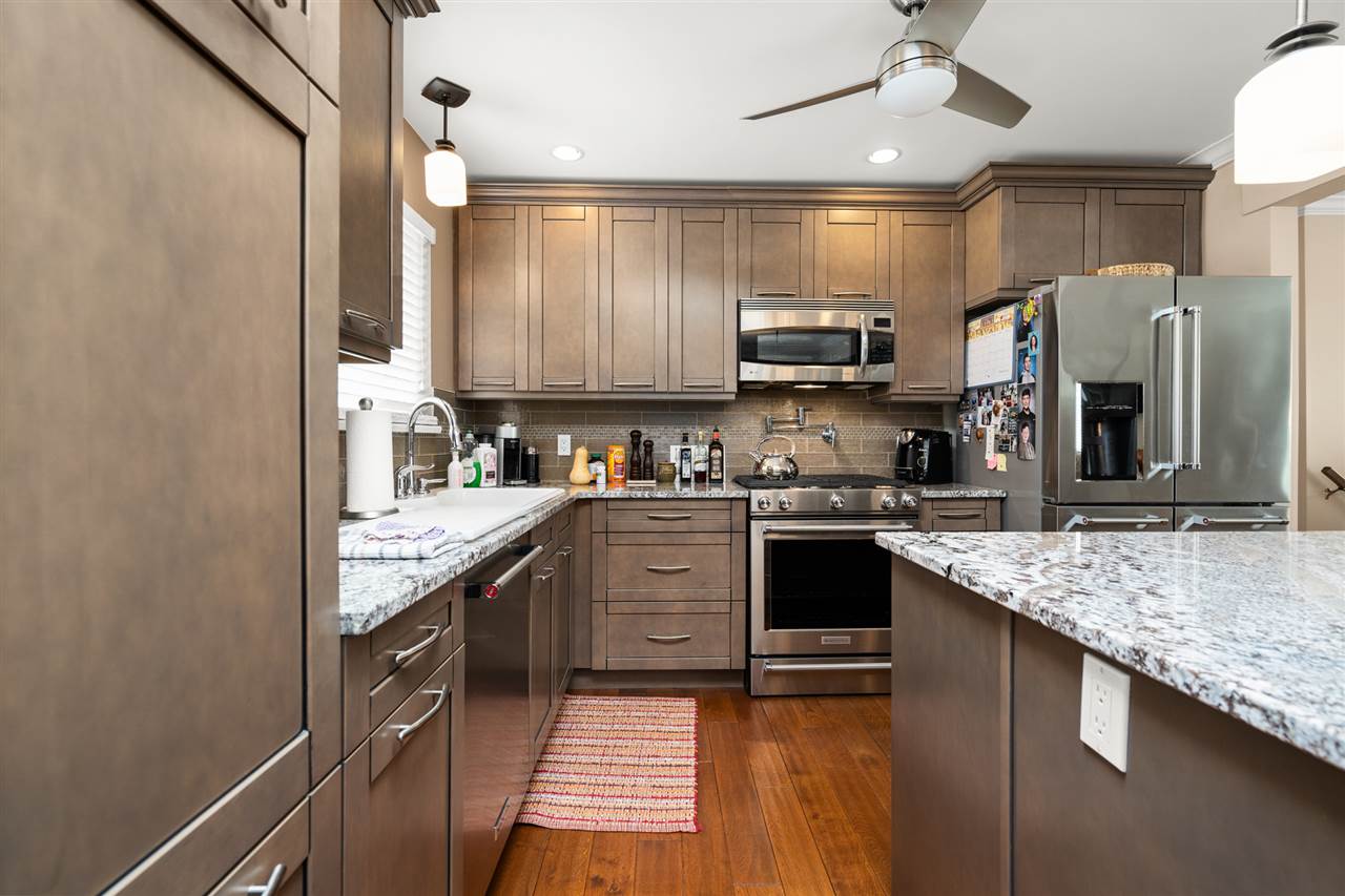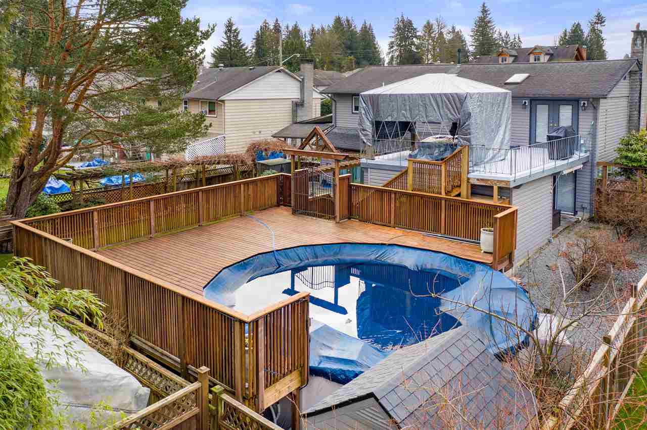 Welcome to this UPDATED home sitting on a large 9,375 sqft lot. This home offers 3 bedrooms upstairs with a large modern bathroom. Complete with quality hardwood floors, brand new kitchen and new Stainless Steel Appliances. The fully finished basement can easily be suited for those that would like a mortgage helper. It currently is being used as a media room (with extra sound proofing), separate room for an office & a very large utility room/workshop on one side – perhaps a mancave?? The very large deck right off the kitchen and dining room is perfect for large gatherings or basking in the summer sun. Walk down the steps off the deck and be welcomed to the swimming pool with a raised lounge area making it the perfect summer hangout with enough room for pool chairs & still space left over!