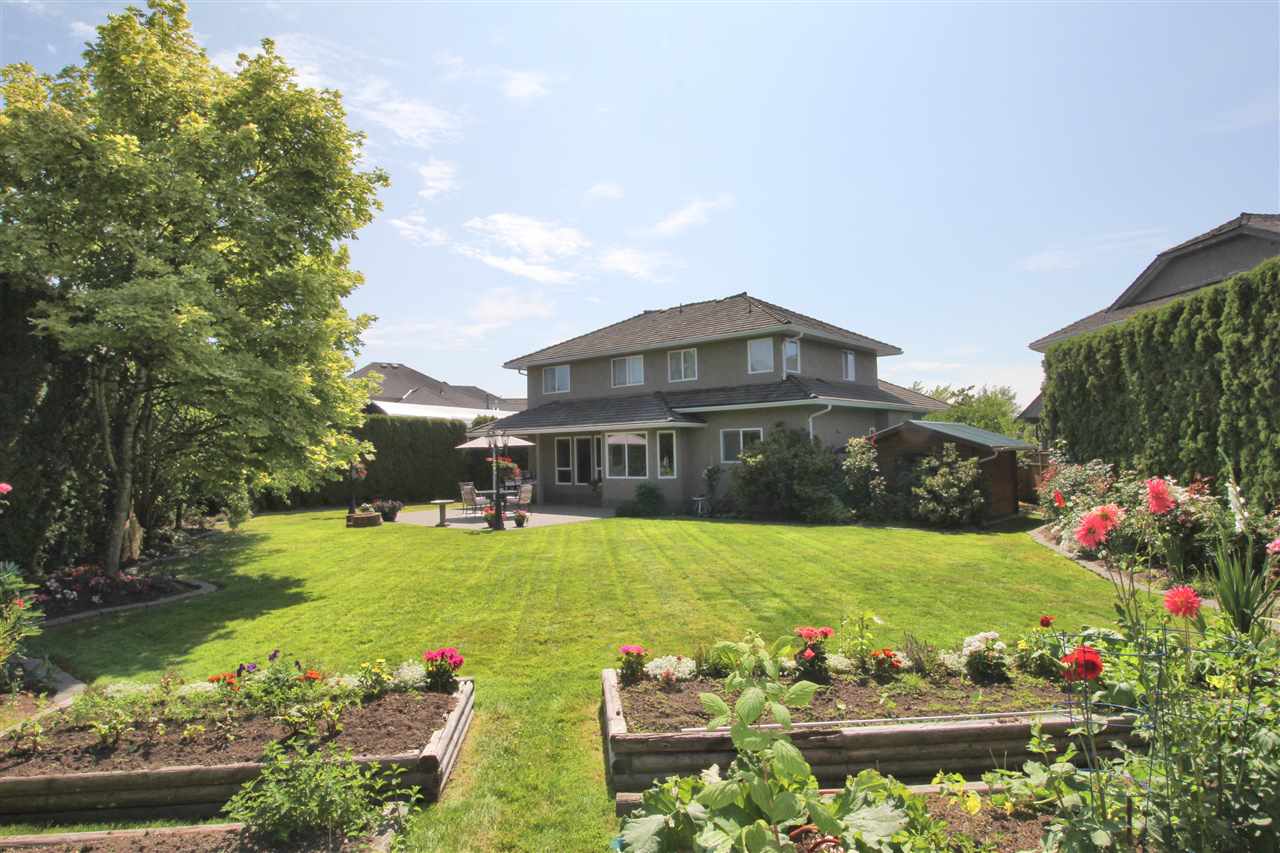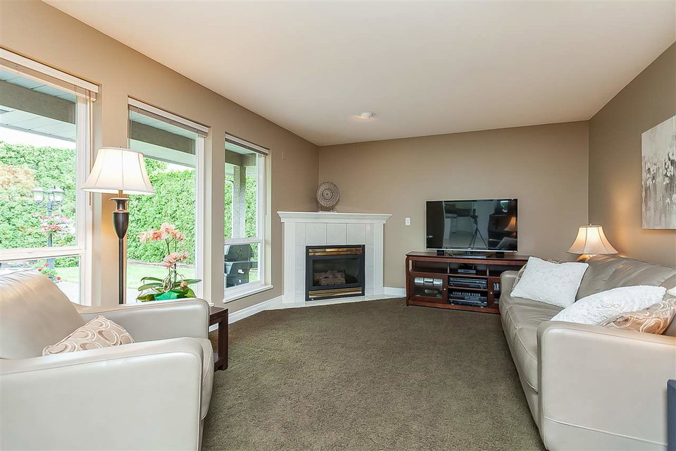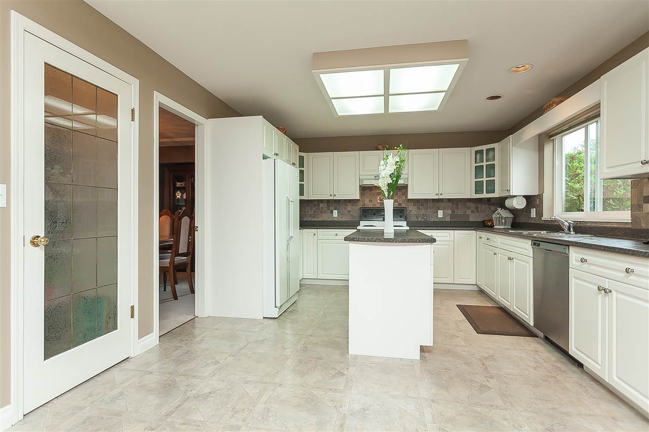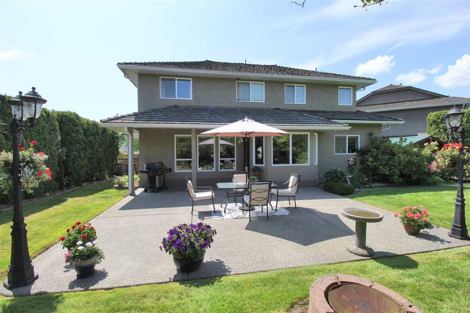 Attractive 2 storey home on a gorgeous 1/4 acre+ lot in a quiet Murrayville cul-de-sac location. Main floor foyer w/ open staircase & skylight leads to spacious living room w/ high coffered ceilings, sunny & bright windows, gas fireplace w/ tile surround & adjacent dining room. Large kitchen offers plenty of cabinets & counter space, island, walk-in pantry, & huge eating area w/ door to stunning & private rear yard w/ 26’x25’ partly covered patio & 12′ privacy hedge; ideal for year round entertaining. Family room w/ gas fireplace & large windows, bedroom, & 2 pc bath. Upstairs boasts 4 large bedrooms including master w/ 4 pc ensuite. Newer cedar roof (2012), 4’ crawl, & 11’x9’ storage shed. Easy walk to schools, James Hill park, shopping, cafe’s, hospital, & W.C. Blair Recreation Centre.