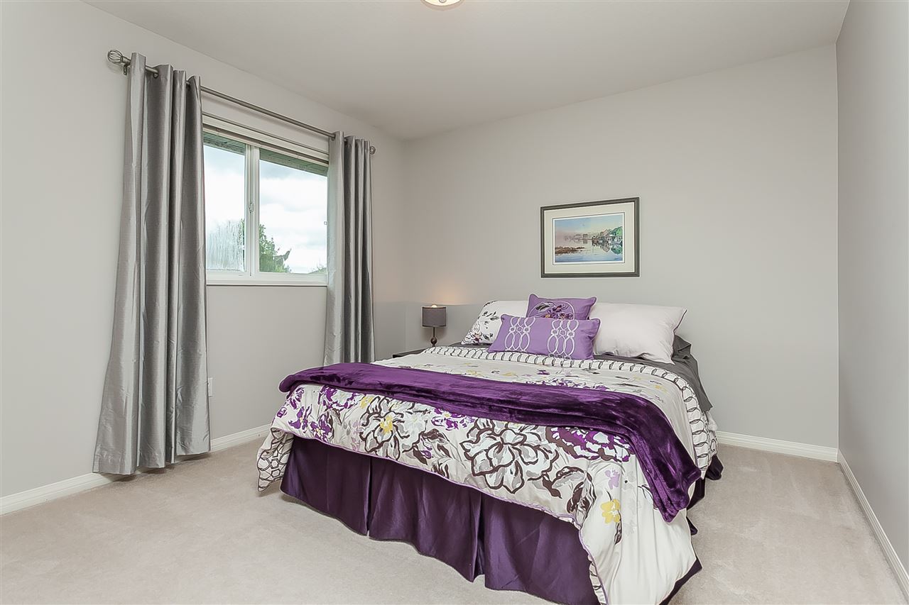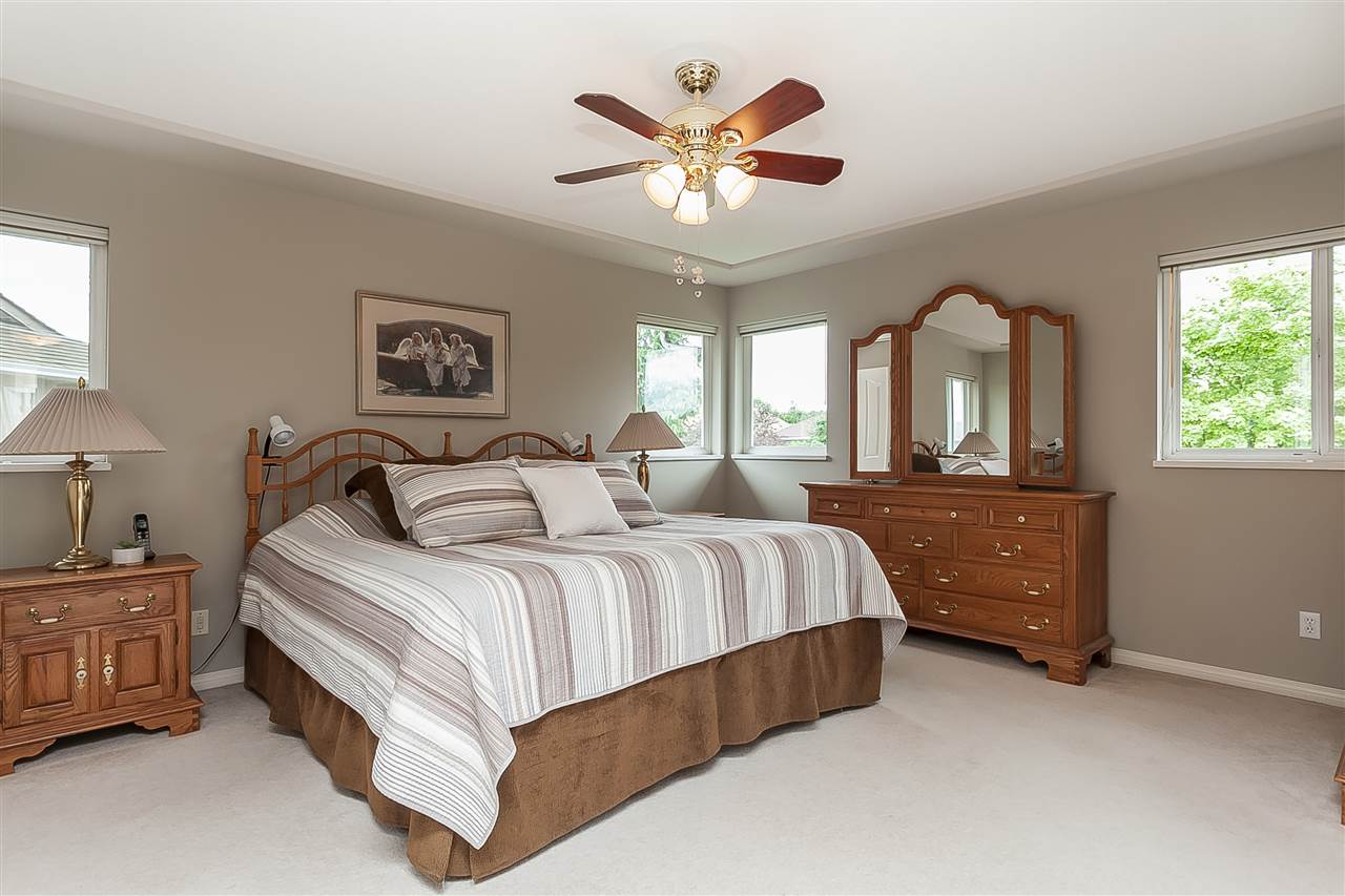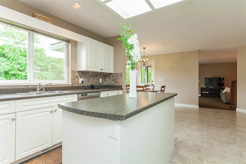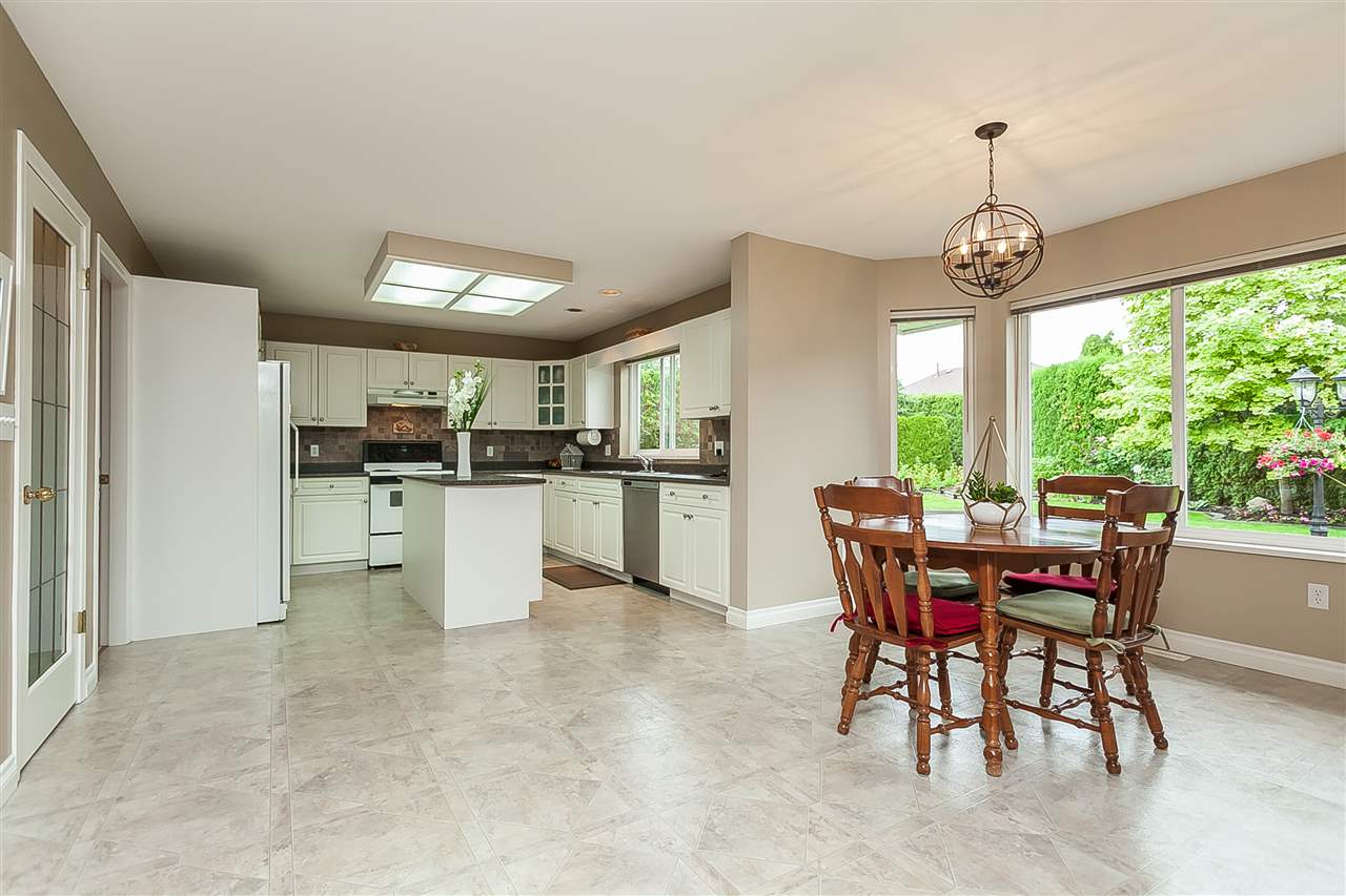 Attractive 2 storey home on a gorgeous 1/4 acre+ lot in a quiet Murrayville cul-de-sac location. Main floor foyer w/ open staircase & skylight leads to spacious living room w/ high coffered ceilings, sunny & bright windows, gas fireplace w/ tile surround & adjacent dining room. Large kitchen offers plenty of cabinets & counter space, island, walk-in pantry, & huge eating area w/ door to stunning & private rear yard w/ 26’x25’ partly covered patio & 12′ privacy hedge; ideal for year round entertaining. Family room w/ gas fireplace & large windows, bedroom, & 2 pc bath. Upstairs boasts 4 large bedrooms including master w/ 4 pc ensuite. Newer cedar roof (2012), 4’ crawl, & 11’x9’ storage shed. Easy walk to schools, James Hill park, shopping, cafe’s, hospital, & W.C. Blair Recreation Centre.