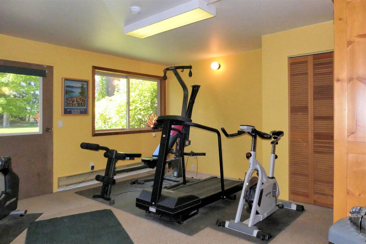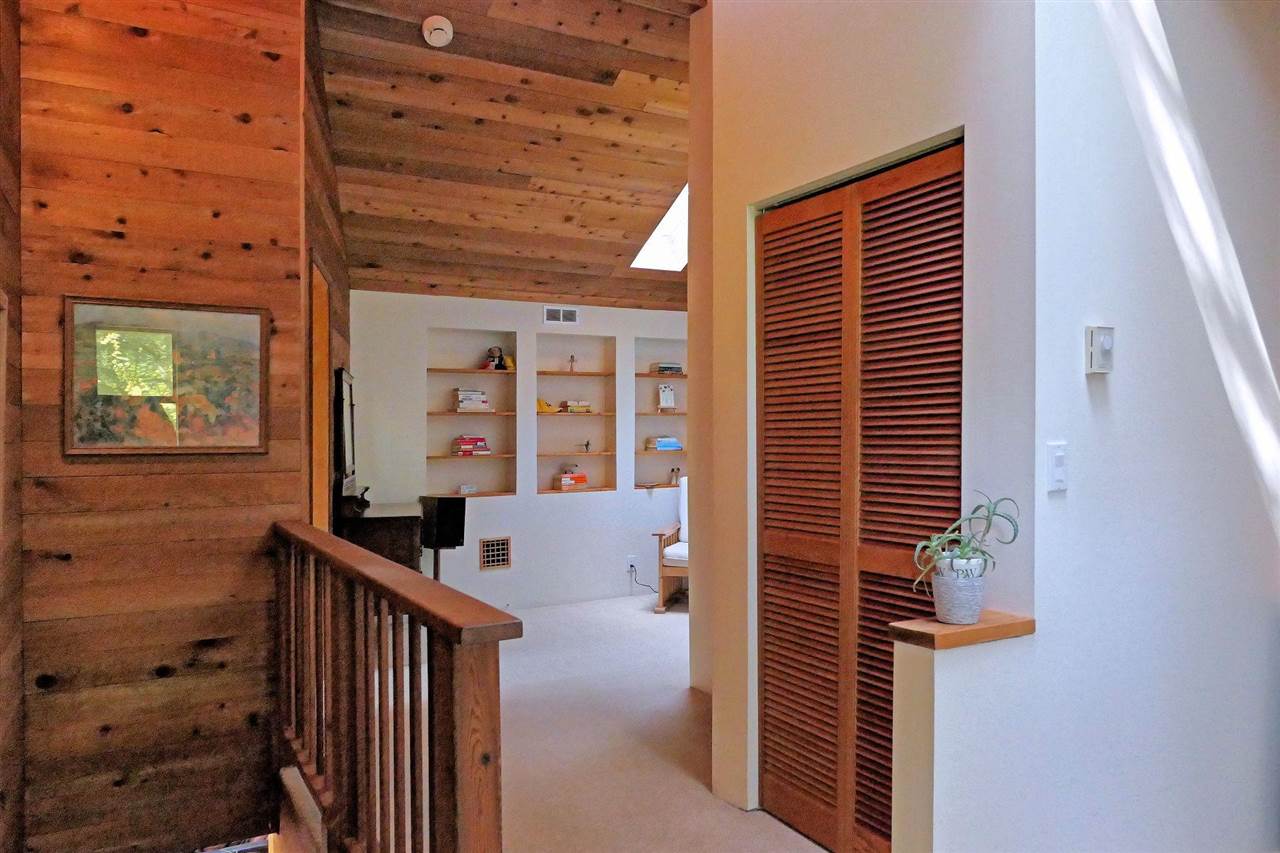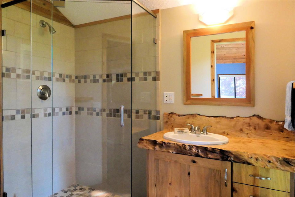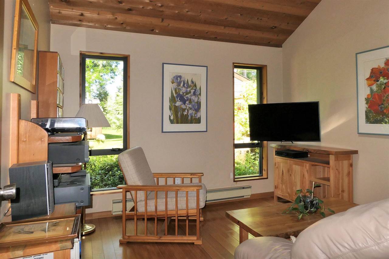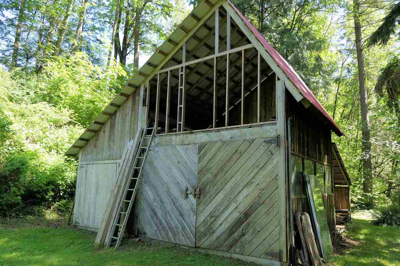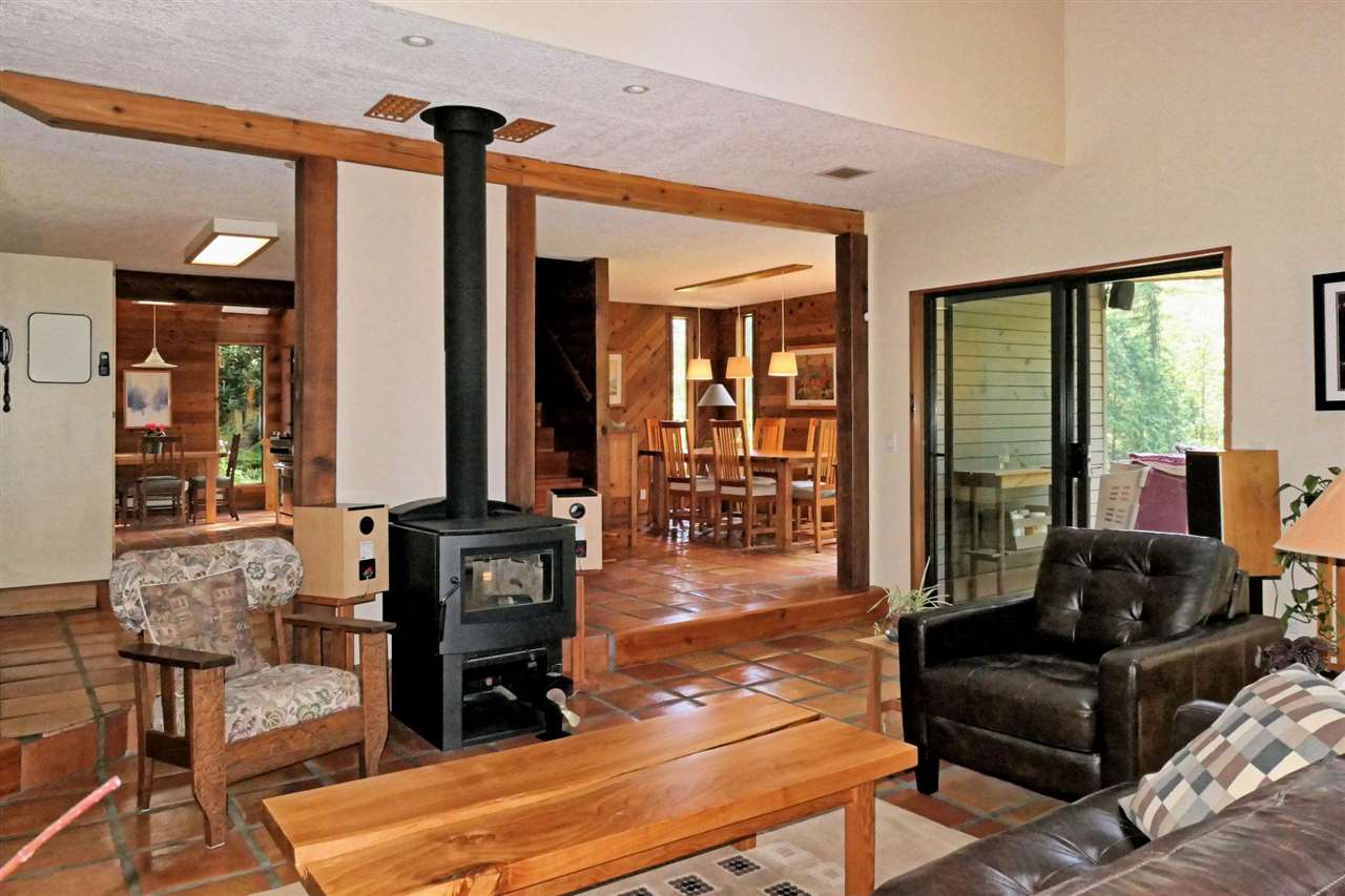 4.77 Acres in Ponder Park. Nestled in the trees on gorgeous park-like acreage this calm property with earthy home espouses the simple life. 2658 sq ft 2 level home is built in the West Coast style with wood tones, vaulted ceilings, skylights & clerestory windows & terra-cotta flooring on main. The 3 bedrm + den and 3 bathrm plan is easy living with free standing wood fire & a gas one too. The Lvgrm opens out to the patio with hot-tub. Outside is attached gym room & detached double garage half converted to a 21 x 15 woodworking shop. The land is partly cleared on 3 levels down to West Creek at the back corner in natural woodland. Trees, lawns, a 20×30 barn, garden with greenhouse & shed, even a wine grape crop. Bonus, stand-by 22 KWh generator. Natural beauty abounds. Look, buy, enjoy.