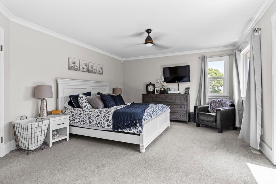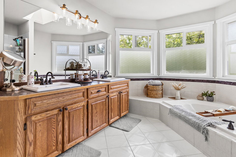 Ideal family home on quiet cul de sac! This 6 bed, 4 bath beauty has been meticulously maintained with lots of updates in past 2 years. Welcoming foyer entrance leads you to formal living & dining room with high ceilings. Stunning kitchen w/ quartz countertops, massive island, loads of cabinets, double sink, eating area & adjoining family room, make it a perfect spot to hang out. Office, garage, & laundry on main as well! 4 bdrms up including large primary bdrm w/walk-in closet, balcony, & 5 pc bath. Downstairs has walk-out basement, huge rec room, 2 bedrooms, loads of storage and suite potential. Walk out to serene patio w/ gazeboed hot tub, private backyard w/southeast exposure. Recent updates incl. light fixtures, hardwood floors on main, A/C, & Exterior paint. Walk to Mundy park too!