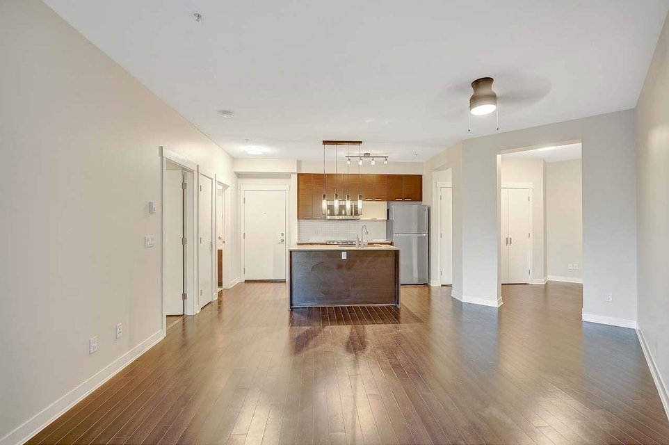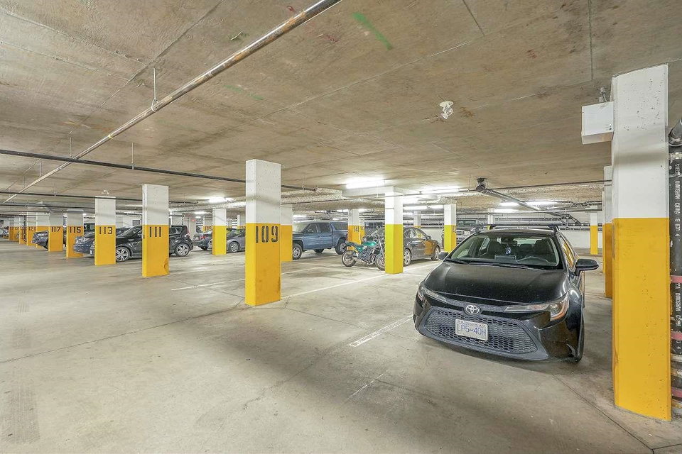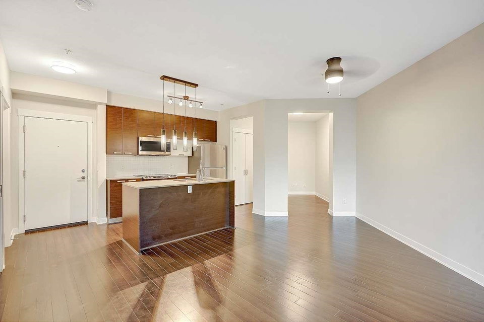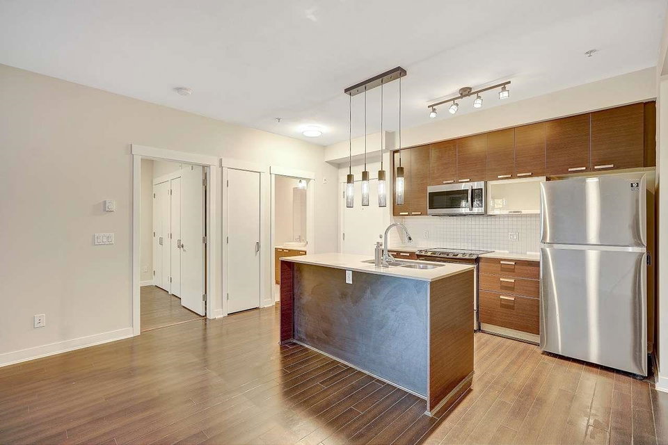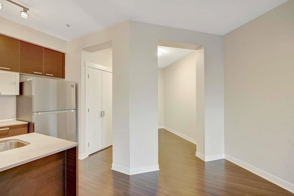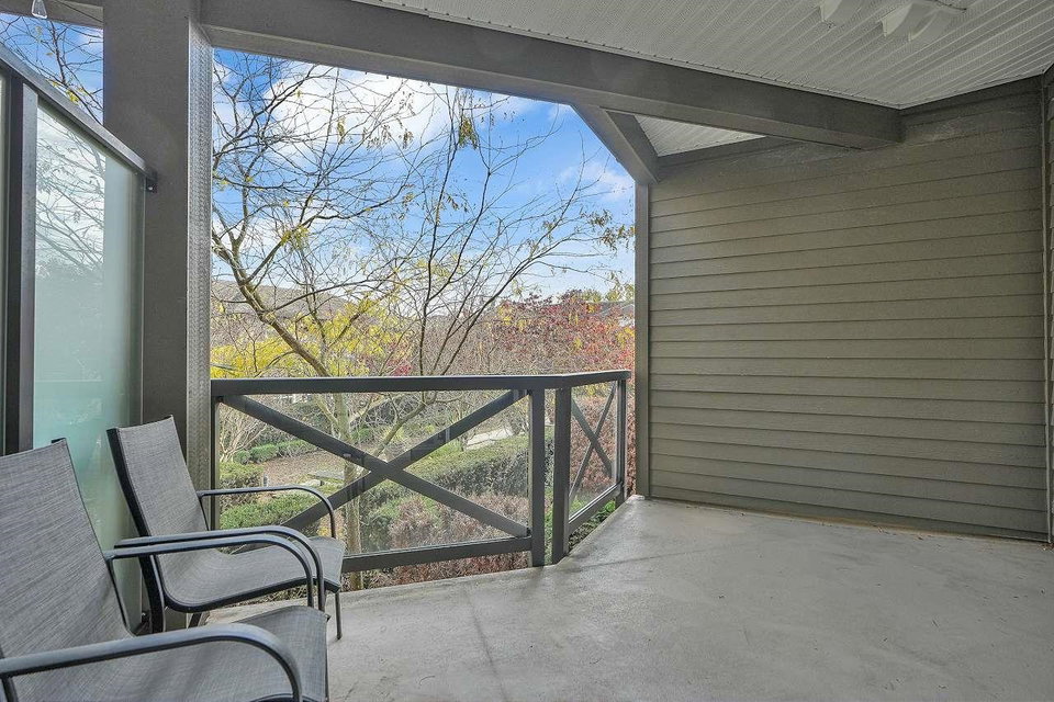CALERA at Clayton Village. Bright and Clean with Fresh Paint, New Fridge & Clothes Washer & Dryer. Great Room Concept with Patio doors to Huge Covered Sundeck and View of Courtyard facing South. Bedroom is also Bright facing Sundeck & Courtyard. Lots of Closet space & Storage. Rare 2 Side by Side Parking stalls & close to Elevator. Lots of Visitor Parking, Walk to Reataurants, Shopping, Parks & Transportation.