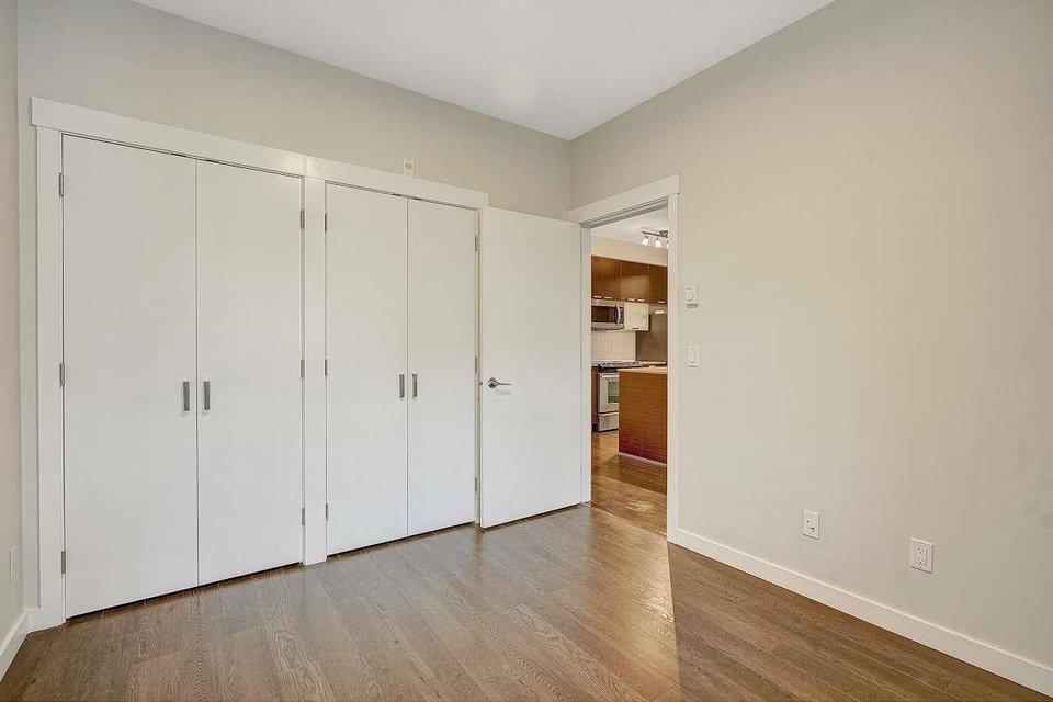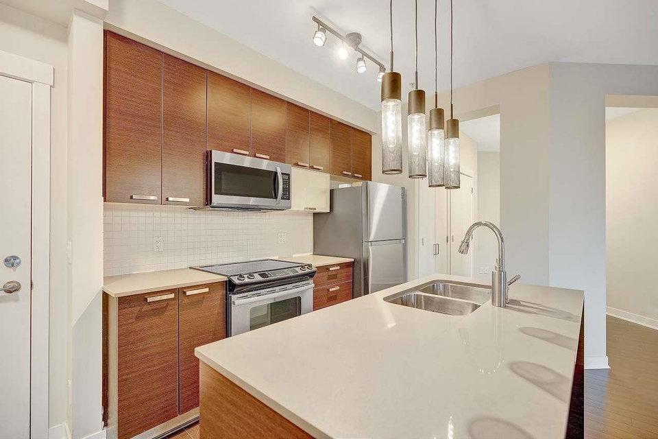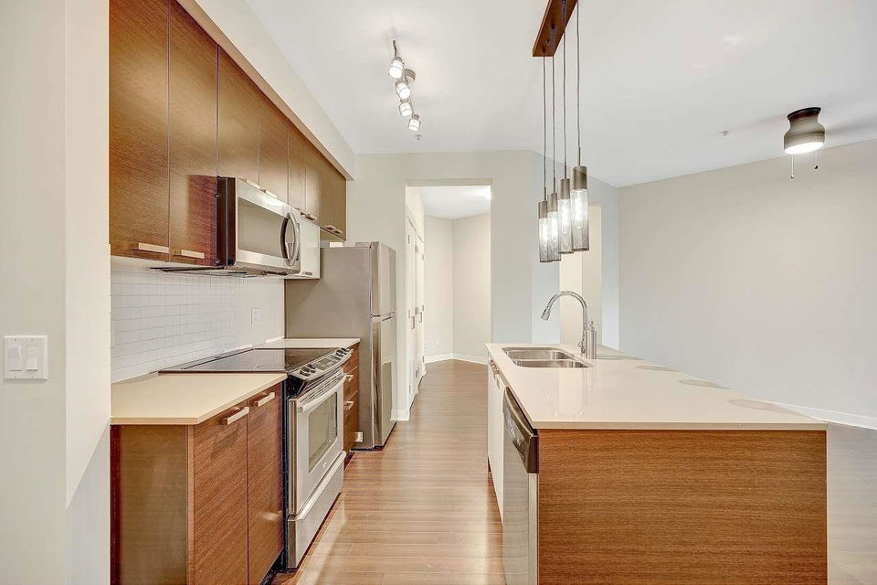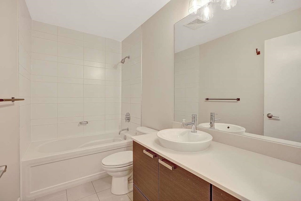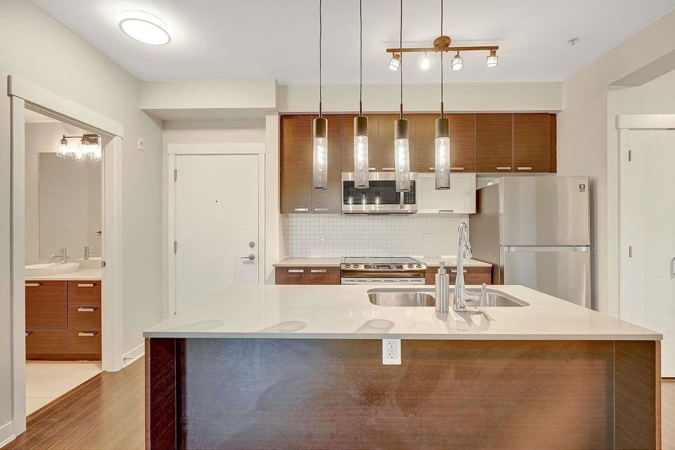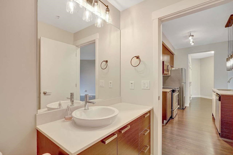 CALERA at Clayton Village. Bright and Clean with Fresh Paint, New Fridge & Clothes Washer & Dryer. Great Room Concept with Patio doors to Huge Covered Sundeck and View of Courtyard facing South. Bedroom is also Bright facing Sundeck & Courtyard. Lots of Closet space & Storage. Rare 2 Side by Side Parking stalls & close to Elevator. Lots of Visitor Parking, Walk to Reataurants, Shopping, Parks & Transportation.