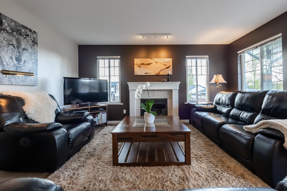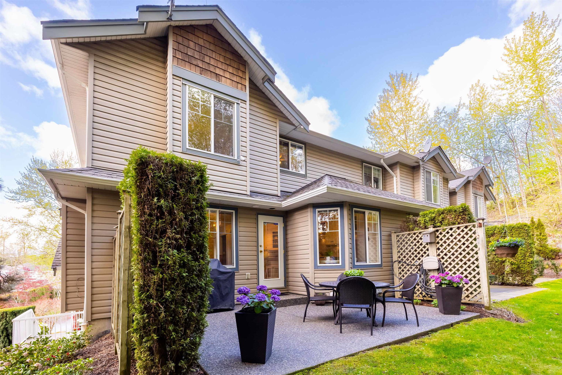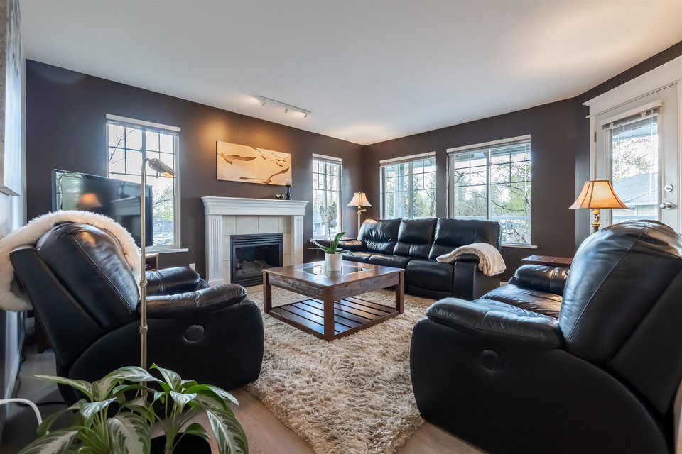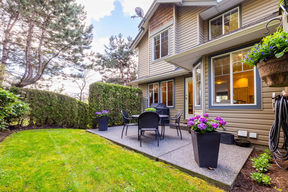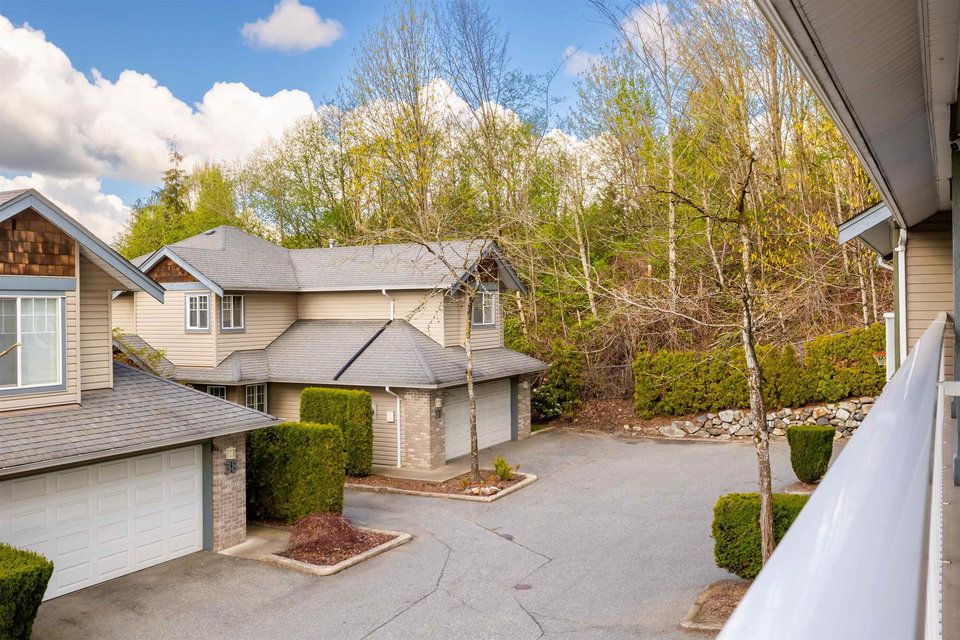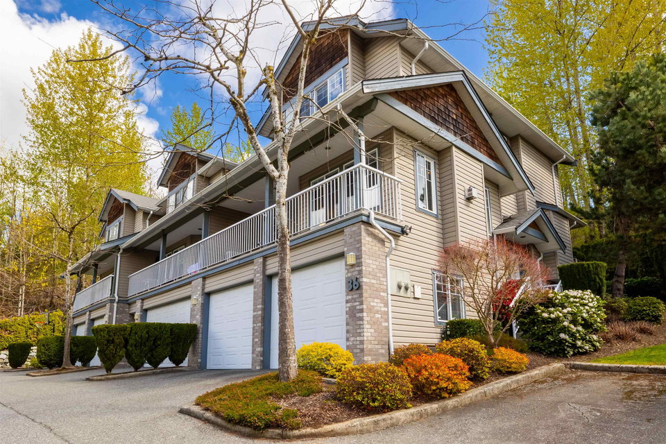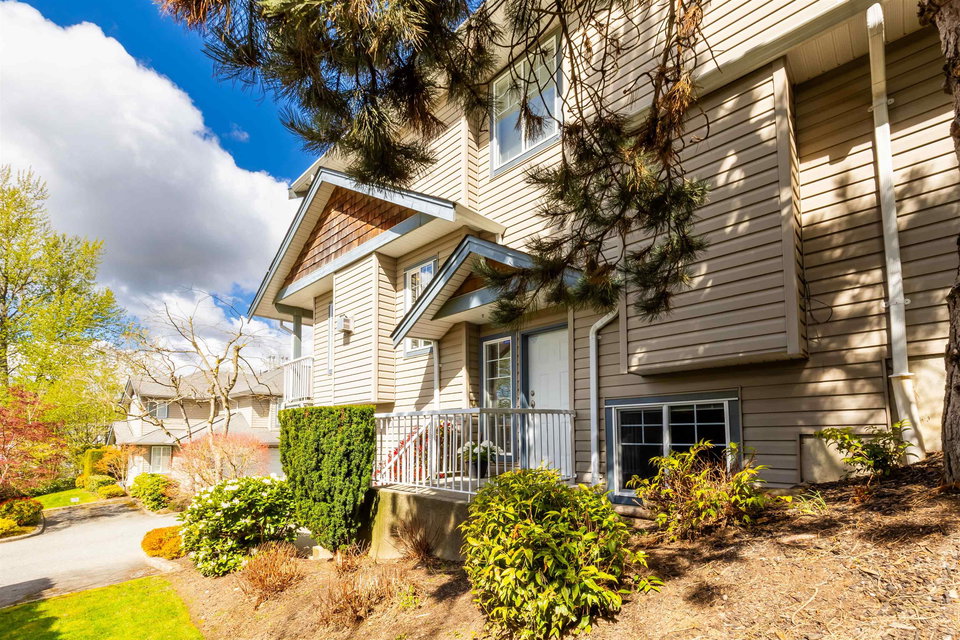 Welcome to Blue Jay Hills in beautiful West Abbotsford! This charming 4 bedroom, 3 bathroom END UNIT family townhome backs onto a greenbelt and feels very private. This home has 3 Bedrooms up with one Bedroom/Rec Room on the lower level, and is tastefully updated with newer floors, appliances, kitchen cabinets and quartz counters. Gas fireplace and newer hot water heater. Plenty of natural light in this home too. From the main level, walk out to the large patio and your backyard oasis. The heat pump allows you to remain comfortable. Complete with a two door extra-wide double garage. Dogs and cats allowed. Amazing location – just a few minutes from Highstreet Shopping Center and close to schools, walking and biking trails. Lots of parking in complex and cul de sac. Come see for yourself!