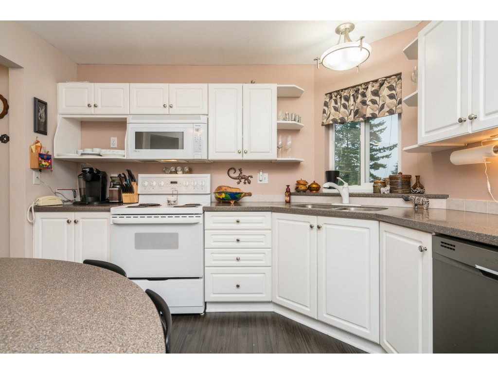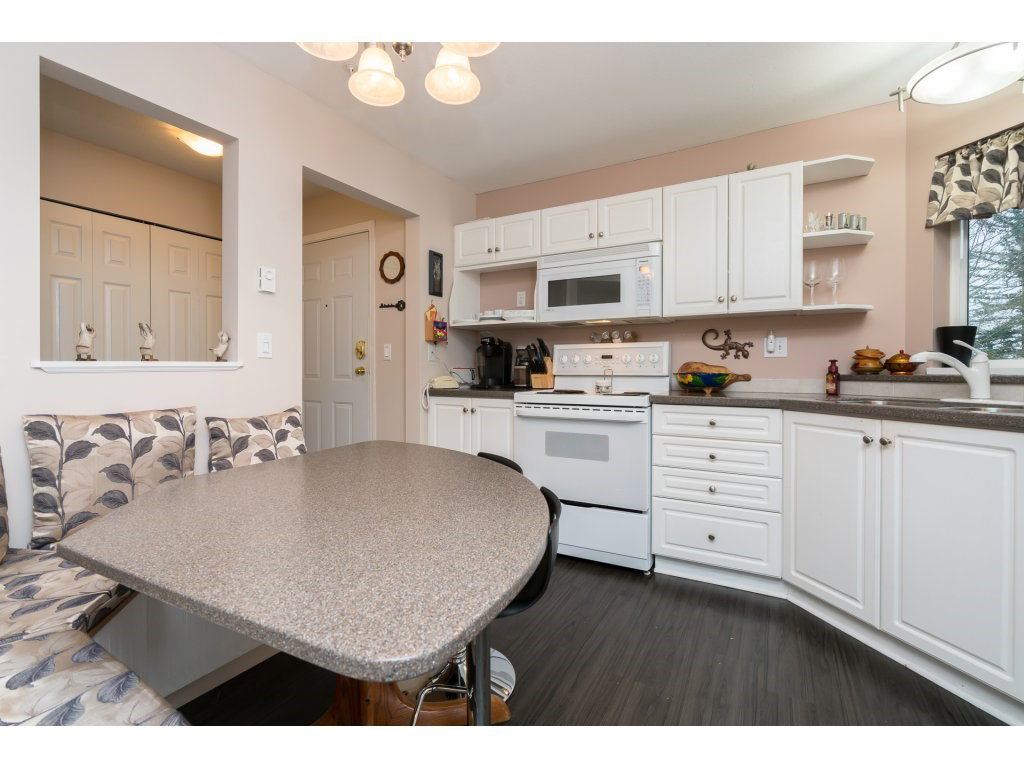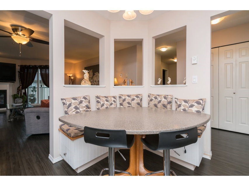 Don’t miss this BEAUTIFUL unit in Cedar Grove Place! Best location in the whole building! $10,000 spent on new floors & bathroom updates. Corian kitchen counters, built in table & benches (storage), gas fireplace, large deck, huge laundry room, lots of windows allowing natural light (even the kitchen), and very private. Maint. includes gas & hot water! Underground parking, storage locker and bike room. Call today for your private showing! This corner unit penthouse will go quickly. 1 pet allowed, 18 inch max.