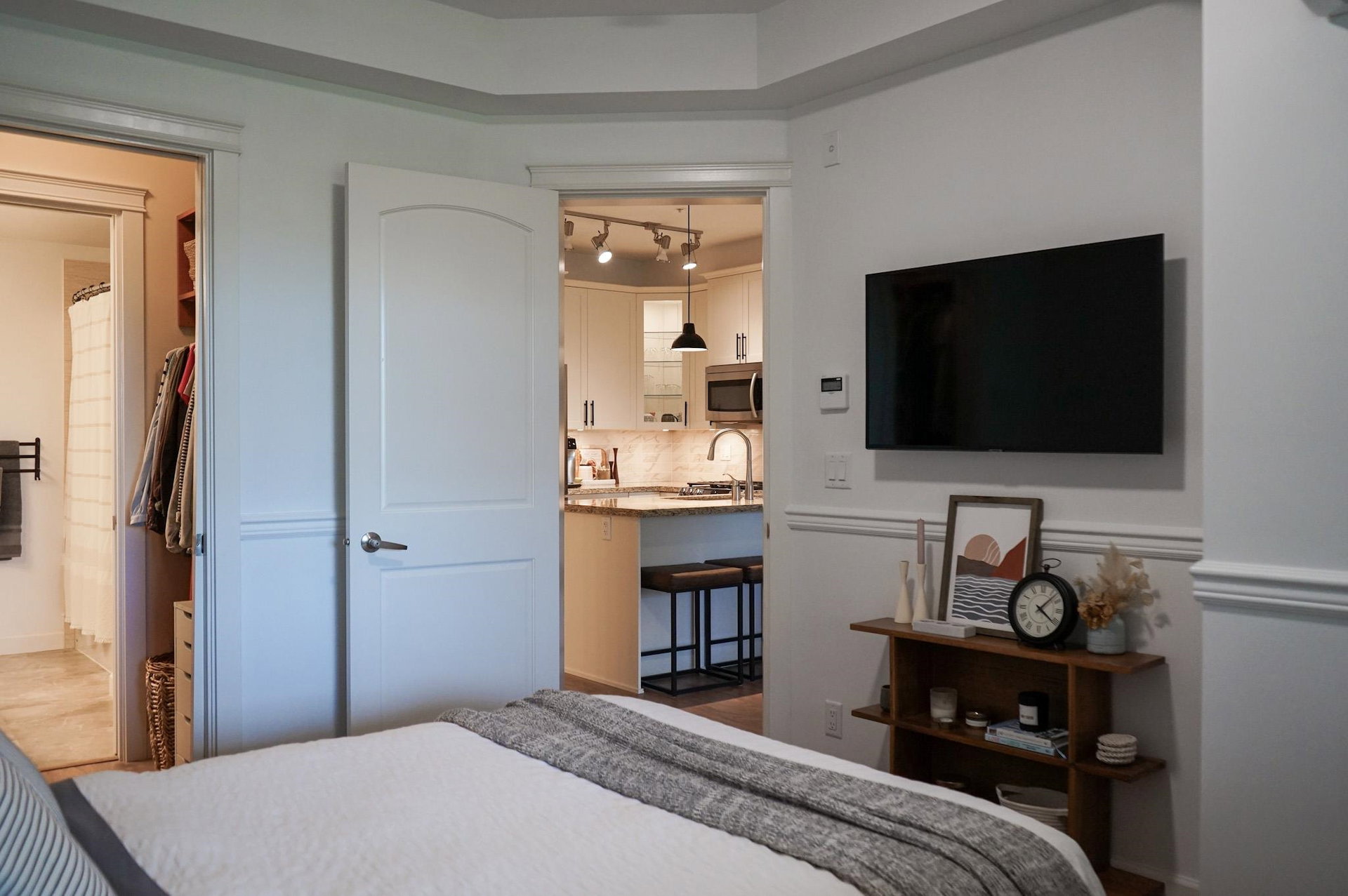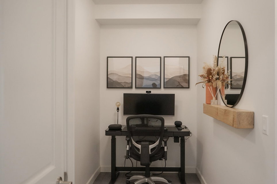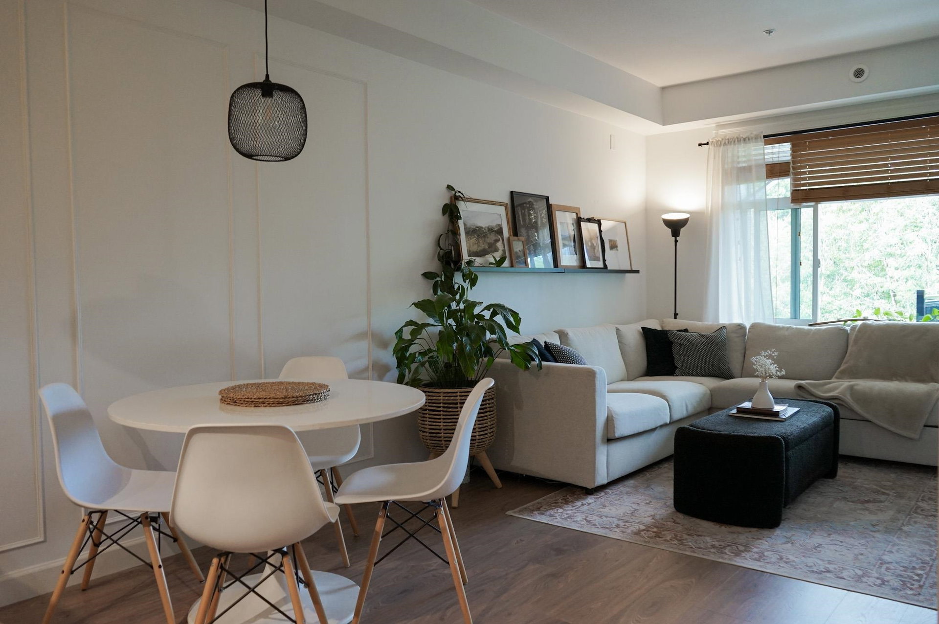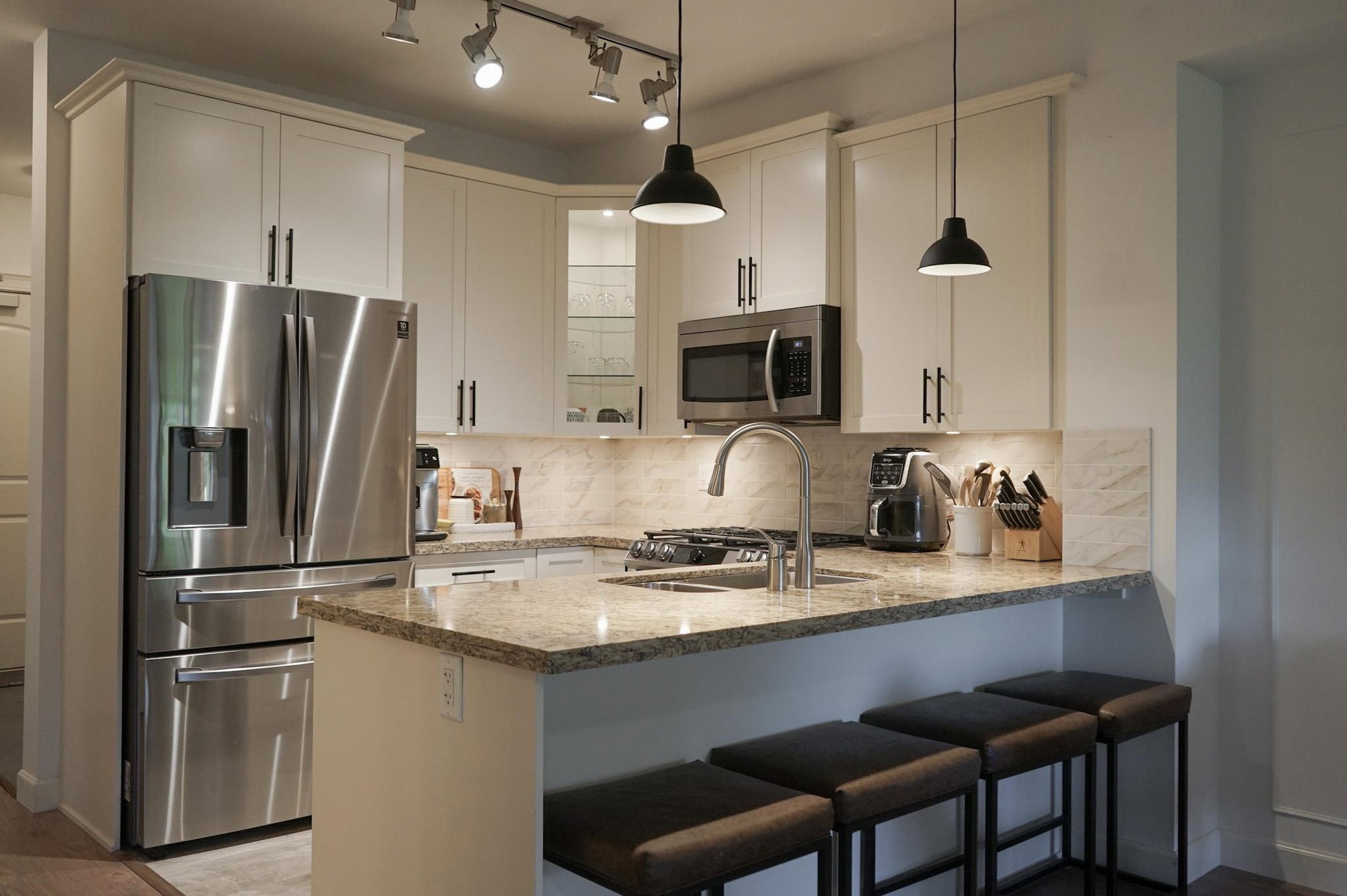Welcome to Yorkson Park! This 2 bedroom and den, 1 bathroom unit features modern living with high-end finishes including a gourmet kitchen, high-end SS appliances, quartz counter tops, natural gas range, breakfasts bar, double sinks, heated flooring and lots of storage! The primary bedroom is spacious and includes a walk-in closest with direct access to bathroom. Den can be an ideal place for your home office. Includes 2 Parking spots (One with Level 2 Charging) and large storage unit! LOW STRATA: $289.06 per month that even covers gas / hot water! There is a 100sqft retractable glass solarium with enclosed BBQ area perfect for entertaining. Pet friendly so bring your dog or cats! Ideal central location with direct bus that goes to Lougheed Skytrain!