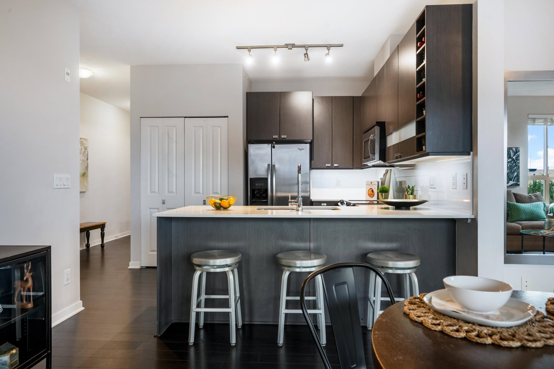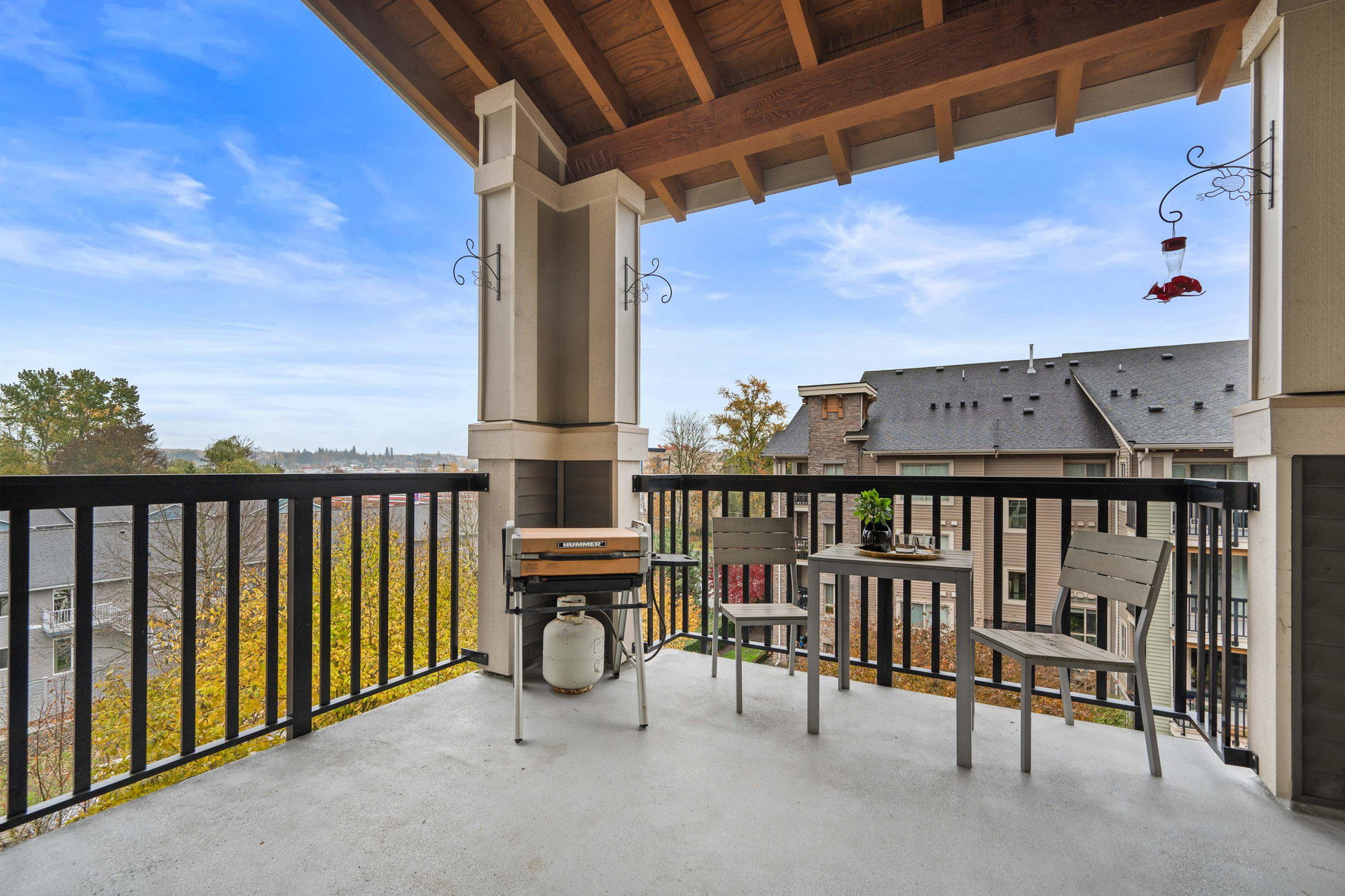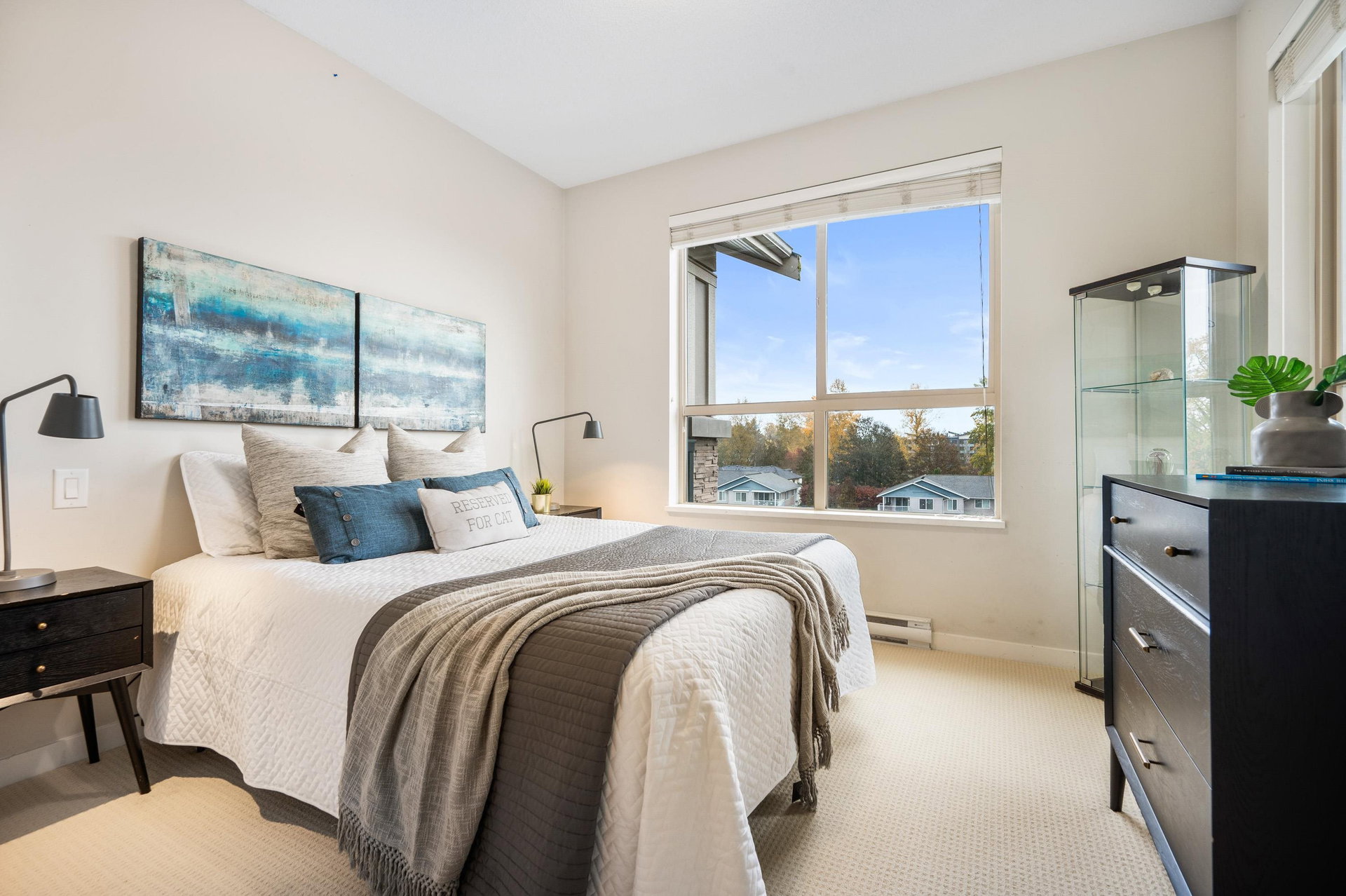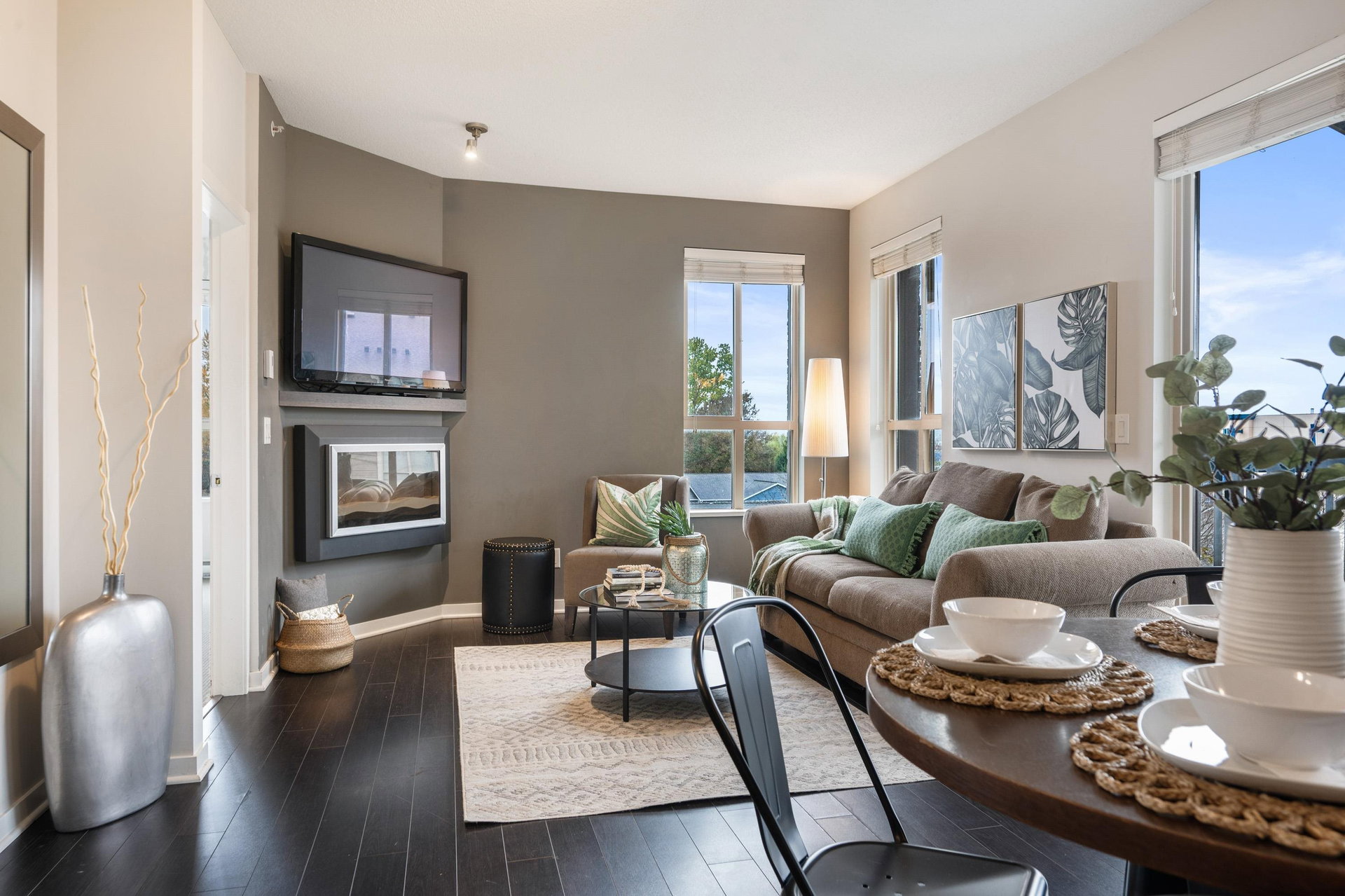 TOP FLOOR 2 bed PLUS Den home in Popular Cornerstone Building. Perfectly situated within the complex, TRUE corner unit, lovely views of Mount Baker, and sunny south exp. Built by Marcon. This large 1010 Square foot Home has Open Concept Living with 9′ ceilings, Quartz Countertops, S/S Appliances, fresh paint, Electric Fireplace, new carpets in bedrooms. Master Bedroom Features a large Walk-in Closet & spa-like ensuite. 2 side by side Parking & DOUBLE storage locker Included. 2 Pets (no size restriction)& Rentals Allowed. Close to upcoming Skytrain line and loads of shopping in Langley.