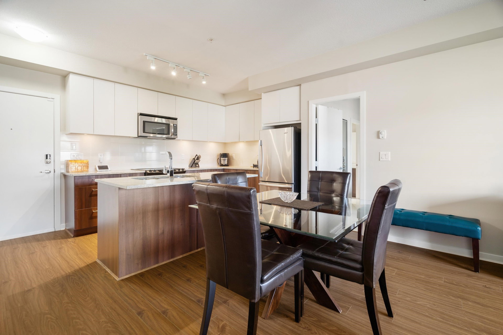 Looking for Resort Style Living? Views of the mountains! This one has it all! Bright and spacious 2 bedroom, 2 bath open floor plan with inviting kitchen large island granite countertops, soft close cabinets, SS appliance, oversized windows (tons of natural light), spacious master bedroom with huge walk-in closet and covered patio. Secured underground parking and storage. World class amenities include pool, hot tub, games room, gym, guest suite, outside fireside lounge, 17 seat movie theatre, chef’s kitchen, BBQ pit and much more. Great location walking distance to shopping, schools, restaurants and transit.