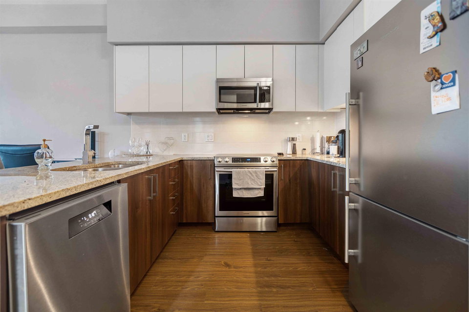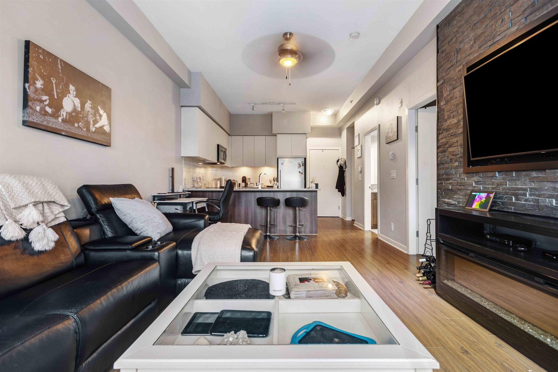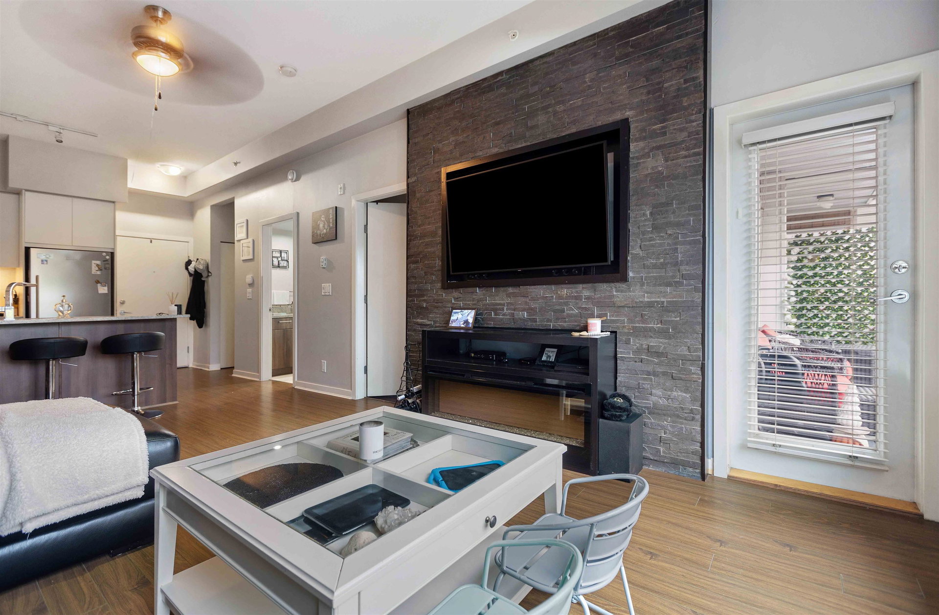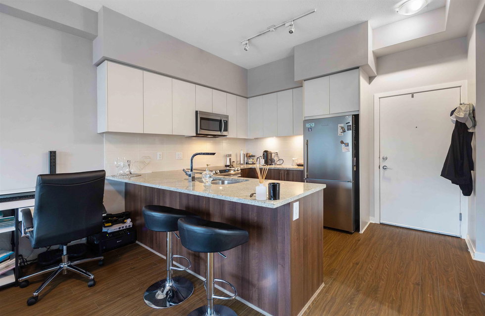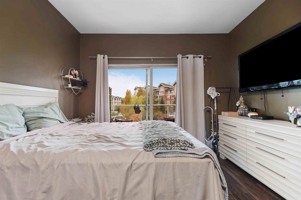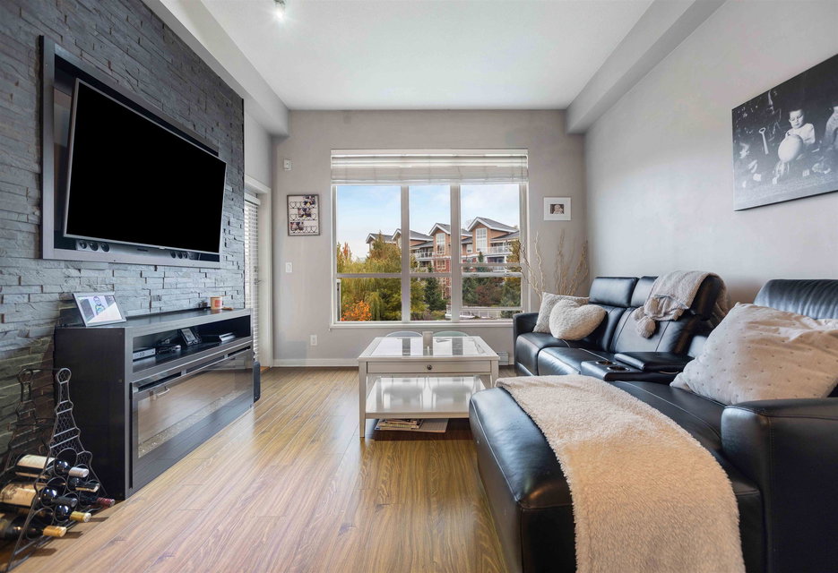 TOP FLOOR | 1 BED + DEN | 2 PARKING + STORAGE | 674 SQFT | A rare find in the desired development of Waterstone. A top floor, spacious 1 bedroom plus den with a lrg balcony. Quietly tucked away at the back of the development Featuring 10 foot ceilings, an added rock wall electric fire place, all carpet replaced with flooring, granite counter tops, newer stainless steel appliances + washer/dryer and TWO side by side parking stalls that can comfortably fit full sized vehicles, plus a storage locker. The development boasts an amazing recreation clubhouse that allows you to enjoy resort style living. Featuring entertainment areas, a private theatre room, pool tables, work out centre, pool, hot tub and sauna. All just minutes from restaurants, public transit, shopping and all levels of schools.