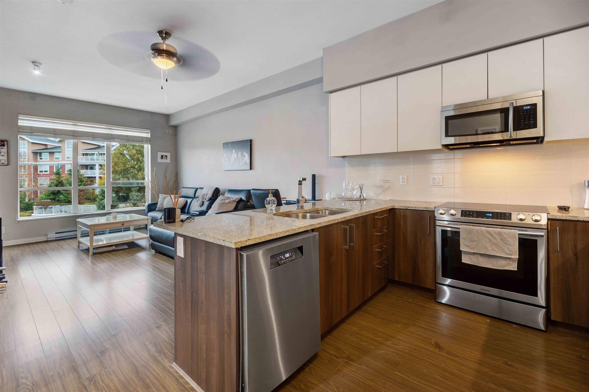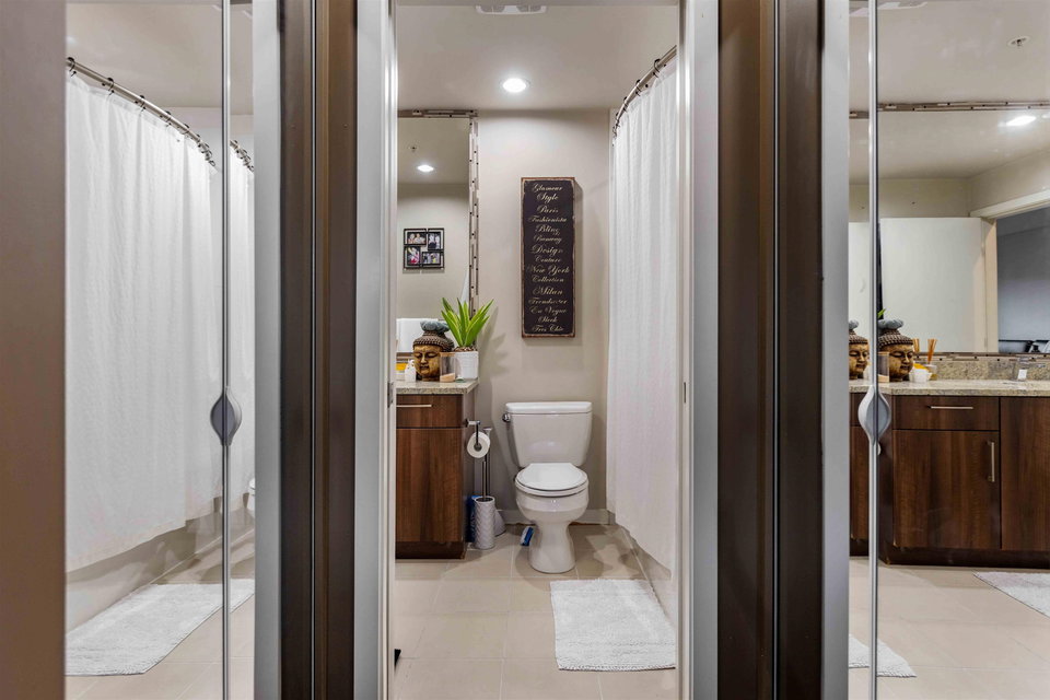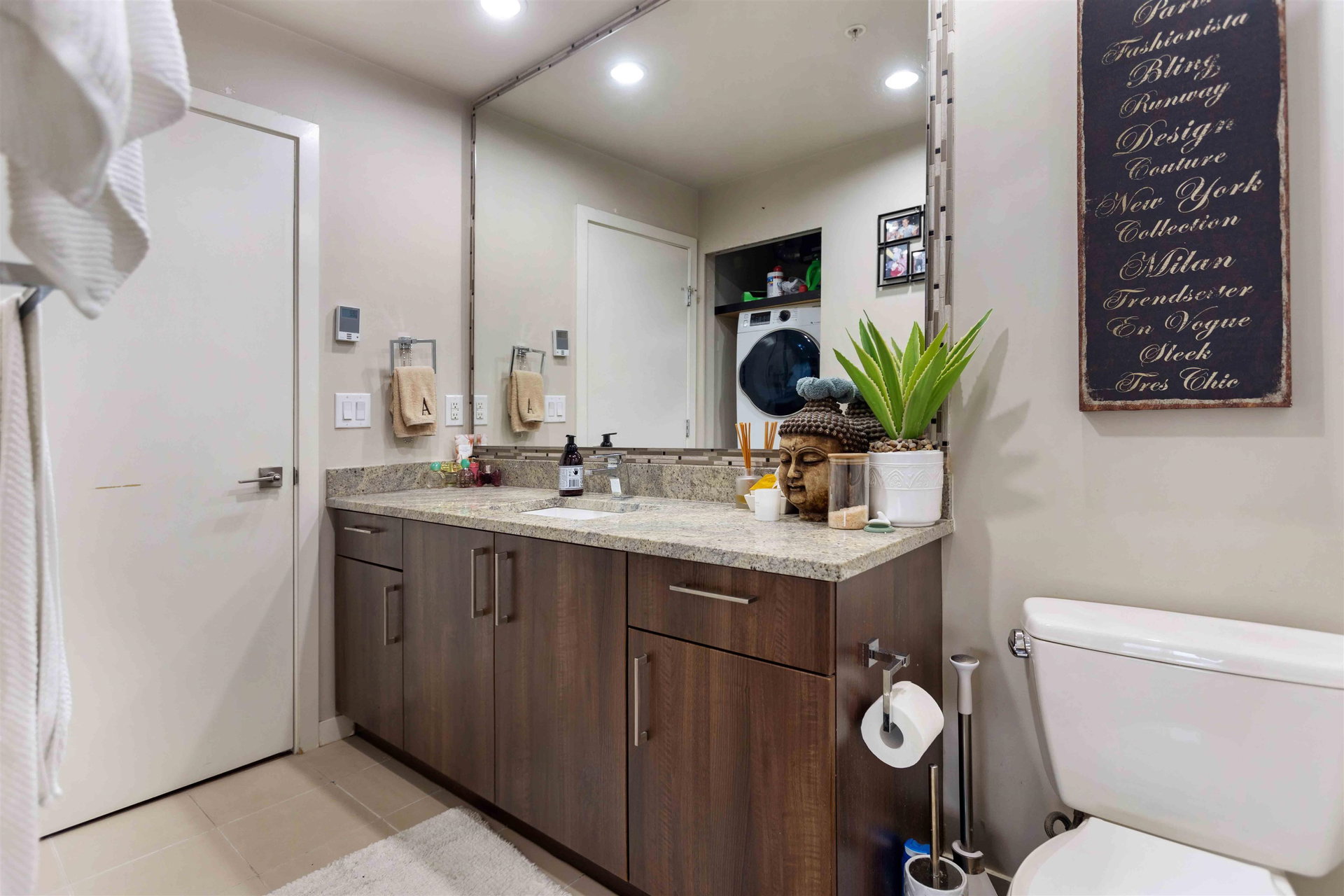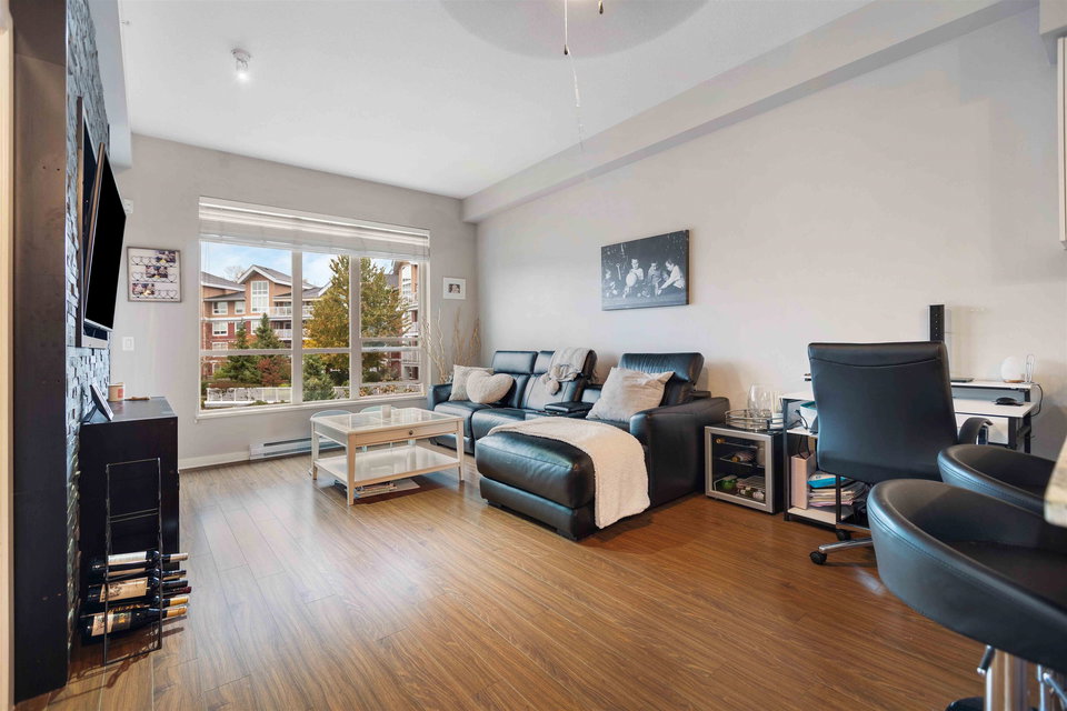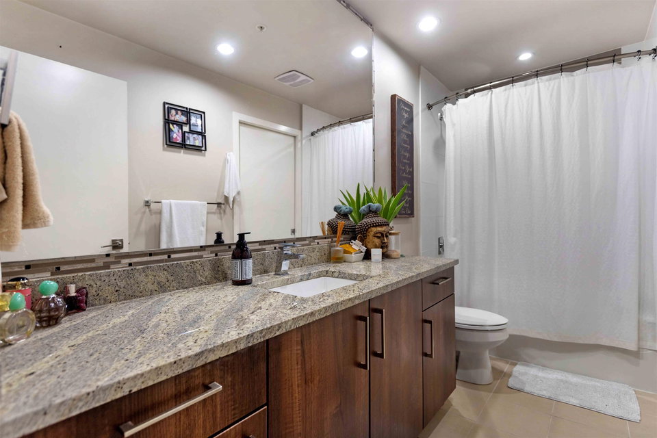 TOP FLOOR | 1 BED + DEN | 2 PARKING + STORAGE | 674 SQFT | A rare find in the desired development of Waterstone. A top floor, spacious 1 bedroom plus den with a lrg balcony. Quietly tucked away at the back of the development Featuring 10 foot ceilings, an added rock wall electric fire place, all carpet replaced with flooring, granite counter tops, newer stainless steel appliances + washer/dryer and TWO side by side parking stalls that can comfortably fit full sized vehicles, plus a storage locker. The development boasts an amazing recreation clubhouse that allows you to enjoy resort style living. Featuring entertainment areas, a private theatre room, pool tables, work out centre, pool, hot tub and sauna. All just minutes from restaurants, public transit, shopping and all levels of schools.