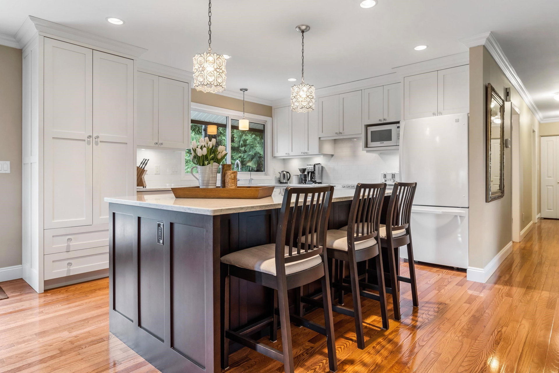 Stunning Mini Acreage in Executive Abby Neighbourhood. This 1.41 acre property offers a private retrate mins away from the city and all amenities. Nearly 3000sqft with 4 beds, 3 baths, Beautifully updated inside offering open concept Kitchen with white shaker cabinets, quartz counters and oversized Dining room. Large Living room with window seat and wrap around deck. 3 Beds up including primary w/ensuite Down; Lg family room 4th Bed, laundry room and storage w/ cold room. Oversized double garage and detached 32×20 shop. Build a coach house, city water, Central AC, Clean and ready for you to move in tomorrow!