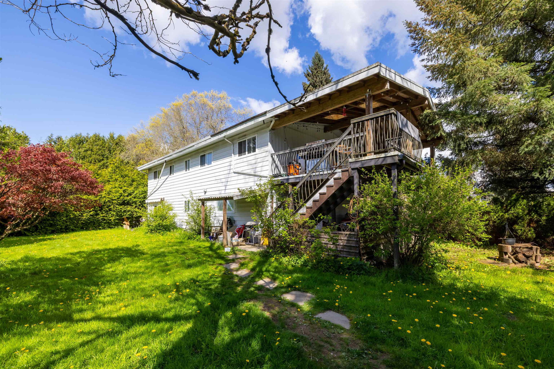 Welcome to this peaceful corner of Salmon River, Langley, and 1.3 acres of possibility. The home currently boasts 4 bedrooms, with 3 up top and 1 downstairs, 3 bathrooms, and spacious dining/living areas over both levels. Enjoy indoor/outdoor living with large balconies on the upper level, overlooking the land and beyond. Parking includes a covered garage, carport, and driveways. There are also a host of outbuildings and two road accesses. The location offers the best of rural living whilst being just 15 minutes from Langley’s core and minutes from Aldergrove with all its amenities too.