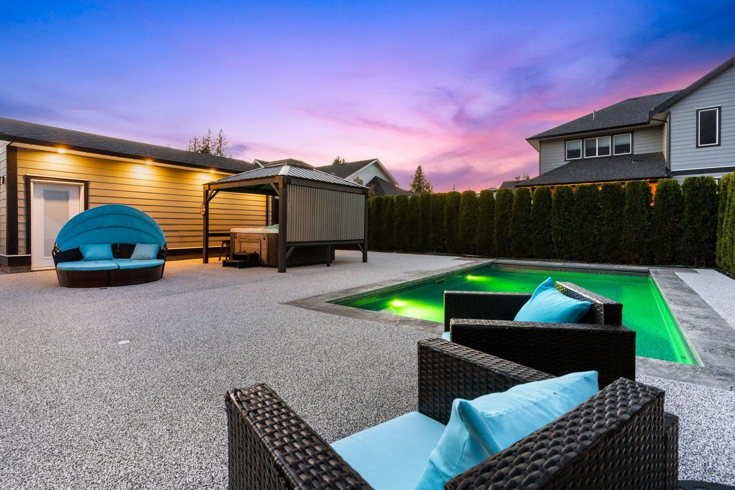 PRICE REDUCED!! Welcome to your dream home – an inviting 6 bed, 5 bath retreat with over 4,100 sqft of thoughtfully designed space!! Soaring 19″ vaulted ceilings in the great room lead you upstairs 2 spacious primary bedroom suites and a 3rd bedroom & bathroom. The fully finished basement includes a private 2-bedroom suite, perfect for extended family, guests, or rental!! Relax in your private backyard oasis ft. rubber paving, in-ground pool with retractable cover, hot tub & gazebo, and a spacious patio, perfect for entertaining! The backyard also boasts a 14’8 x 23’2 workshop, perfect for hobbies & extra storage! Thoughtfully designed and impeccably maintained, this home offers the perfect blend of comfort, elegance, and functionality. Call today for your private showing!