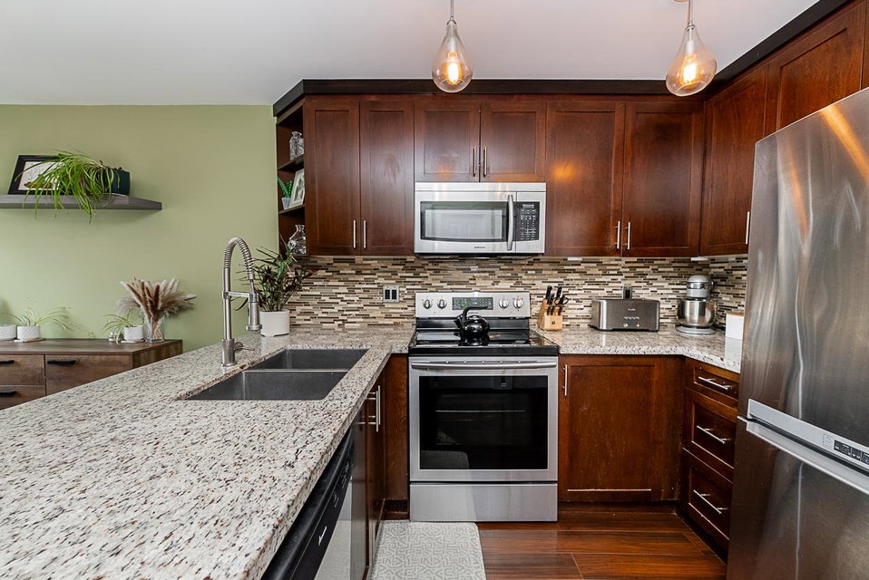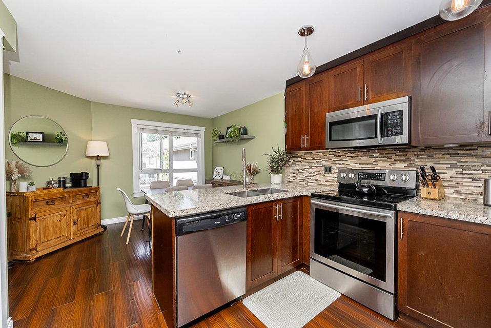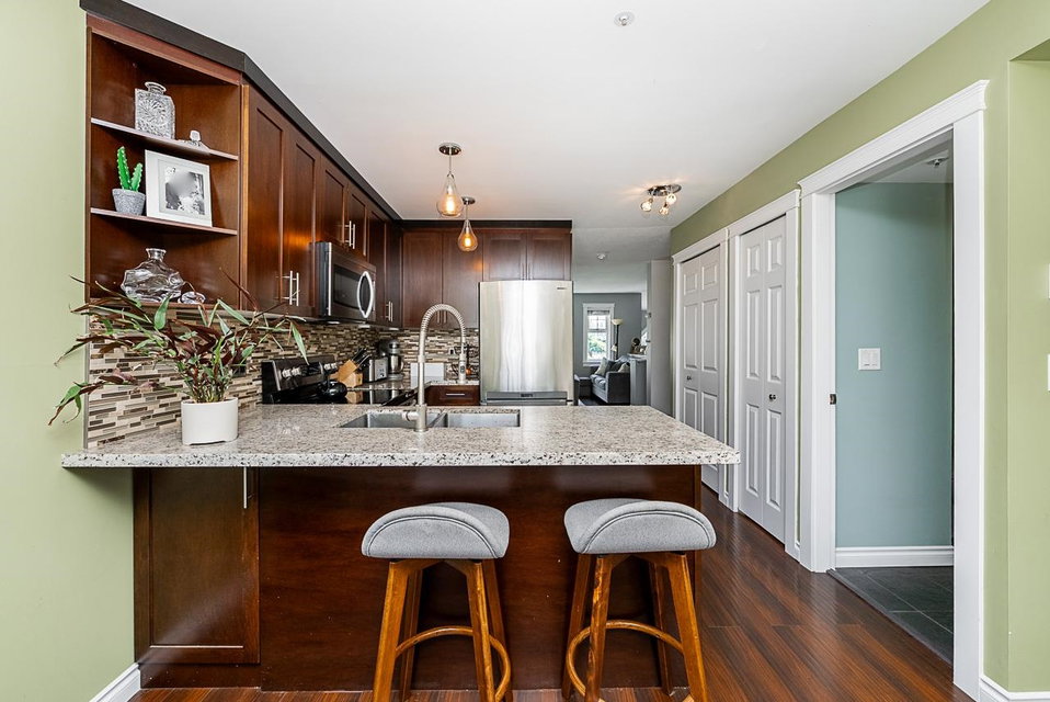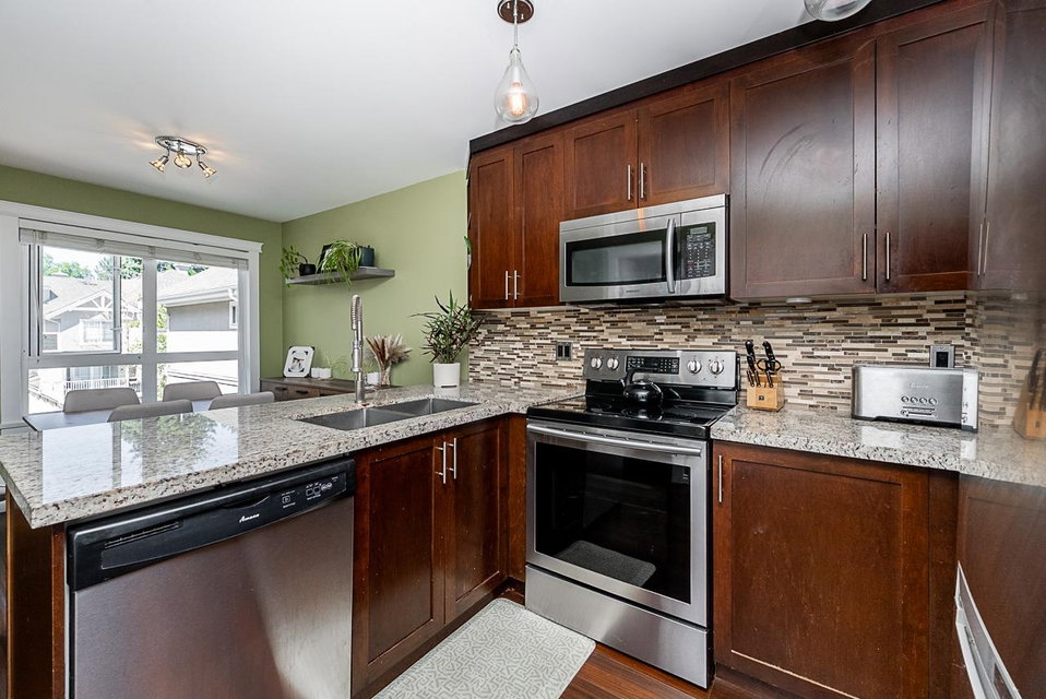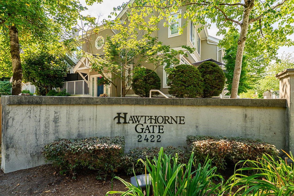 HAWTHORNE GATE!! This is a must see absolutely gorgeous 2 bedroom, 2 bathroom 1198 square foot townhouse in beautiful Central Pt Coquitlam. This home has an updated kitchen with stainless steel appliances, maple cabinets, granite countertops and a breakfast bar. The primary bedroom features vaulted ceilings, ensuite bathroom and a private patio facing the park. Bonus features include a massive double garage with lots of storage space, a powder room on the main floor, gas fireplace included in your strata fees and second patio on the main floor for entertaining guests. Walking distance to nature trails, transit, all levels of schools.