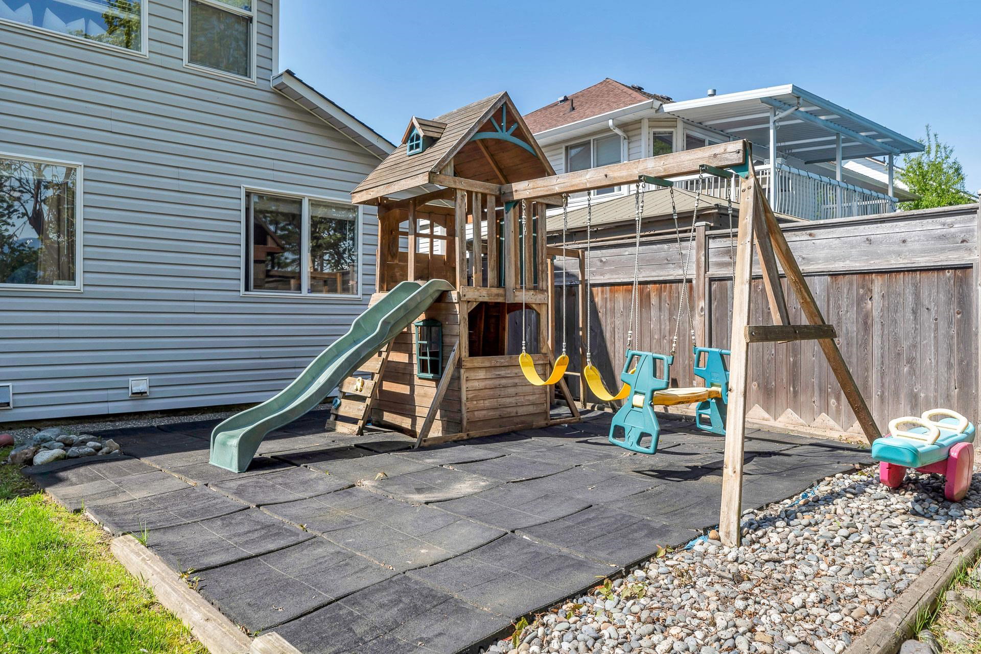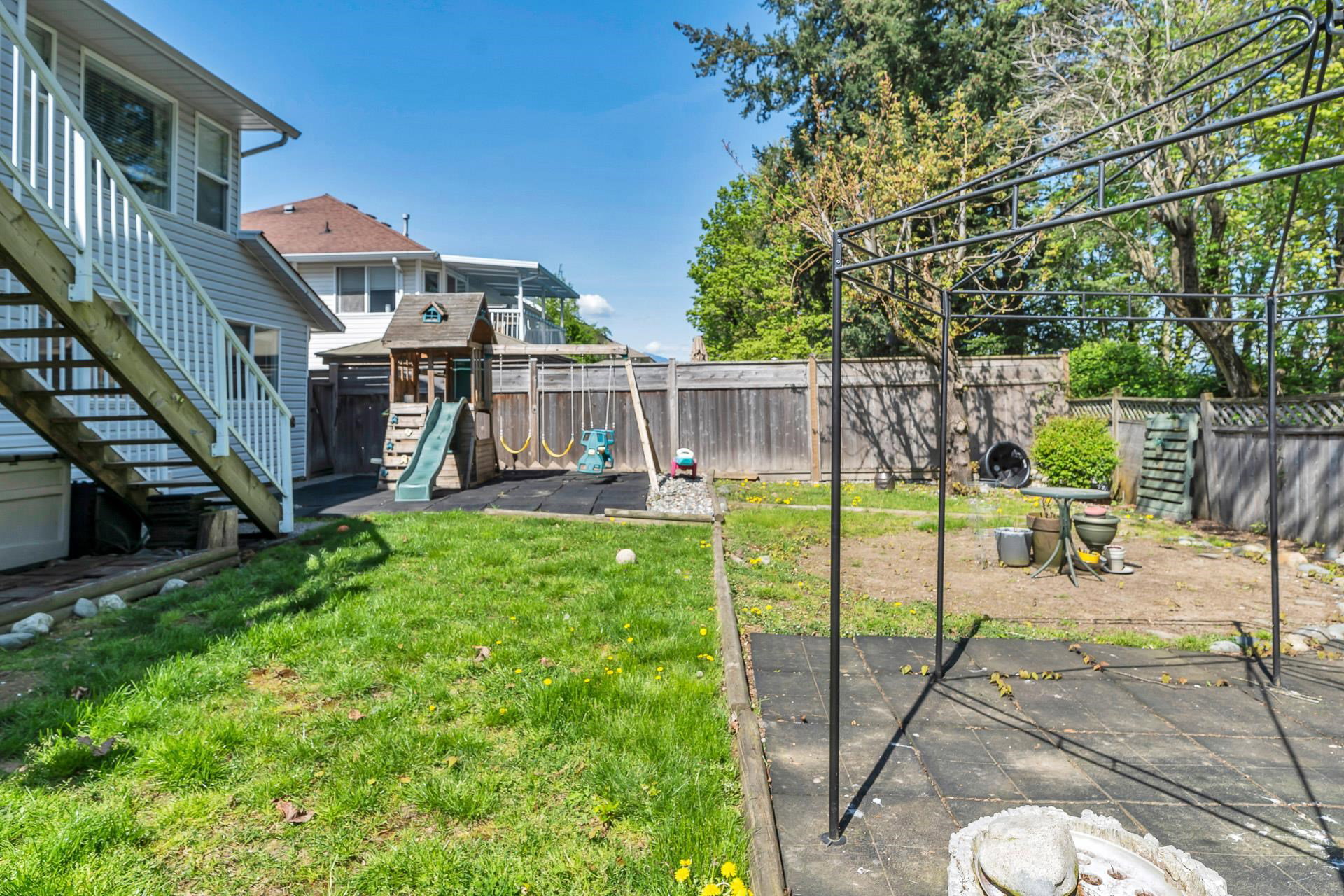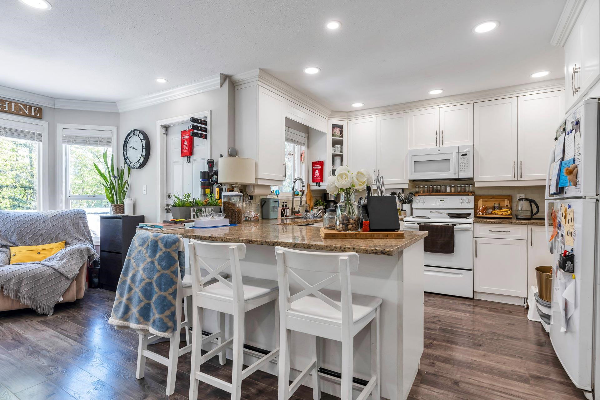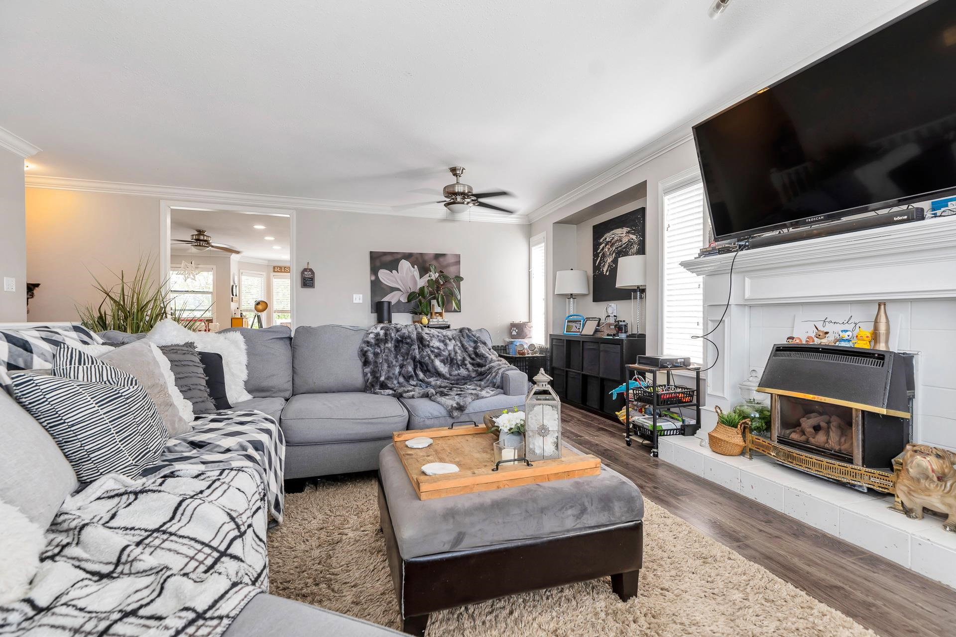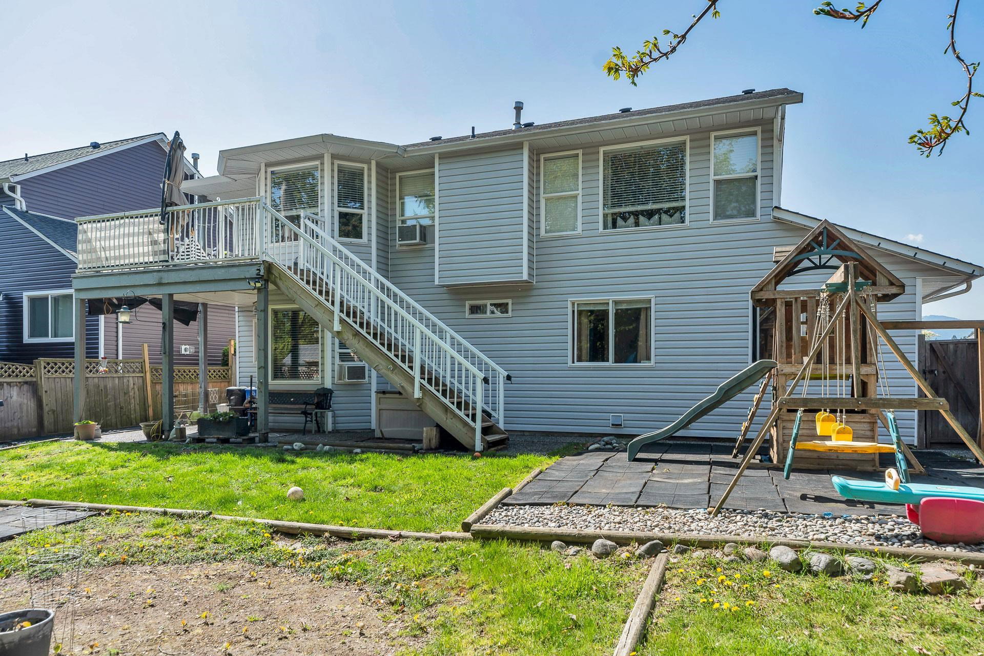 Welcome to this stunning family home in an unbeatable location, backing onto the serene Watson Glen Park! The top floor boasts a gorgeous, updated kitchen with granite countertops, a spacious living room with crown molding, and 3 cozy bedrooms plus 2 bathrooms. Downstairs offers ample space for extended family with 2 more bedrooms and a large family room. Recent upgrades include a new hot water tank and freshly installed carpeted stairs. Enjoy your own private backyard oasis with a deck, patio, and ample space to entertain, all in a peaceful neighborhood just a short walk to Garrison Crossing, shops, restaurants, UFV, and scenic Vedder River trails!