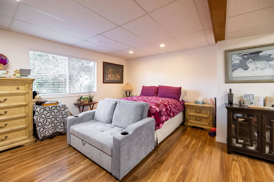 This wonderful 3-bedroom, 3-bathroom basement entry home sits on over a quarter of an acre on a no-thru road. With just over 2,000 square feet, there is lots of room for your family and extended family too. The backyard is very private and fully fenced with a mature apple tree. This home has 3-bedrooms up and room on the lower level for an additional couple of bedrooms or the addition of a full suite. The kitchen has been recently updated with maple cabinets and marble countertop. Rec room below is currently setup as a nanny suite. The roof was done in 2010 and comes with a 30-year warranty. The home has air conditioning and a quality air filtration system built into the furnace. For commuters, this home is conveniently located only 4-minutes away from the Westcoast Express!