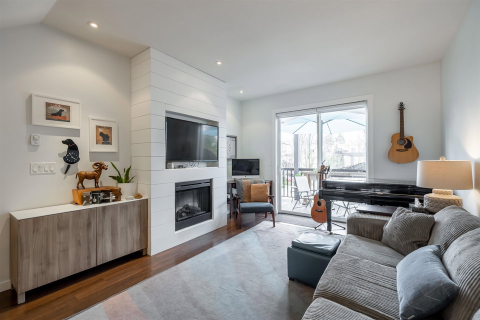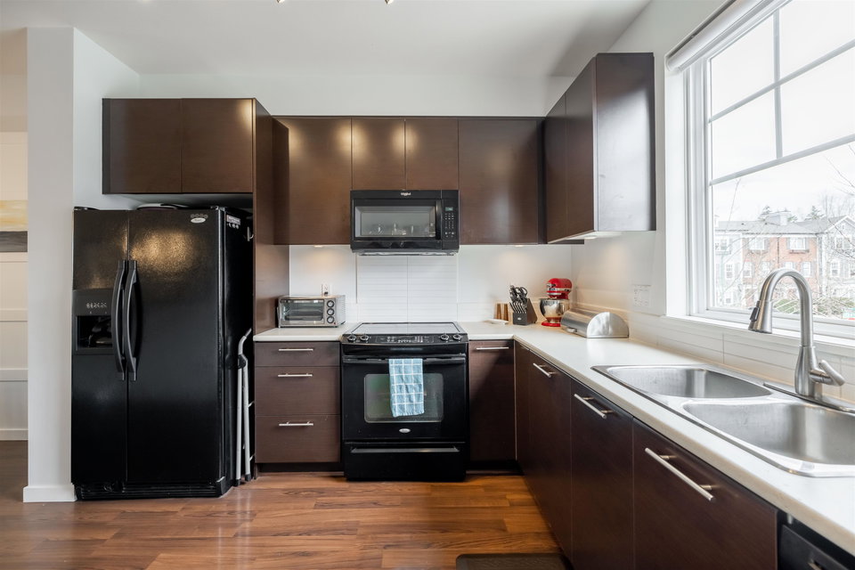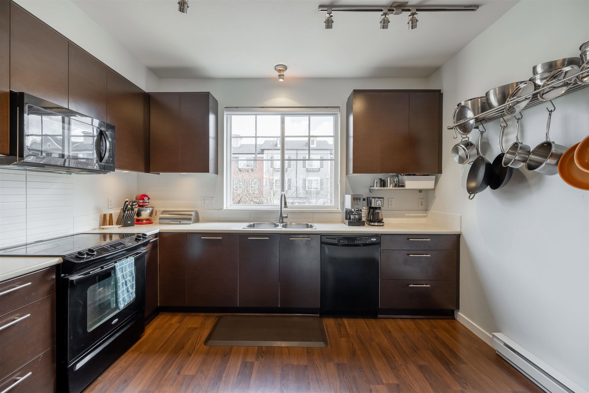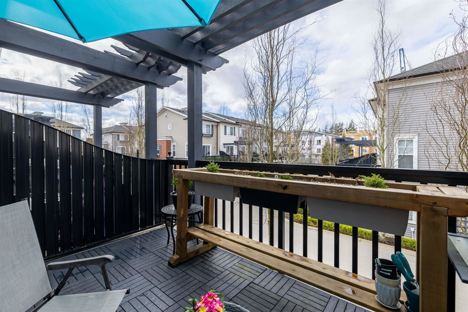 Welcome to Tate in popular Clayton Heights and this immaculate 2 bedroom and den townhome. Stepping into the home you’ll notice immediately how bright it is, the den boasts an included murphy bed and built in workstation, with a handy powder room on the same level. The main level feels spacious due to the high ceilings and open plan living room, dining room, and kitchen. The owners enjoy the patio year round. Upstairs you’ll find two large bedrooms, a bathroom with twin sinks and toilet room, and updated washer/dryer. The single car garage is complemented by a large parking pad. Clayton’s many amenities are all close by with restaurants, shopping, recreation, parks, schools, transit, and more. Checkout the narrated video tour of the home and the neighbourhood in the Virtual Tour URL.