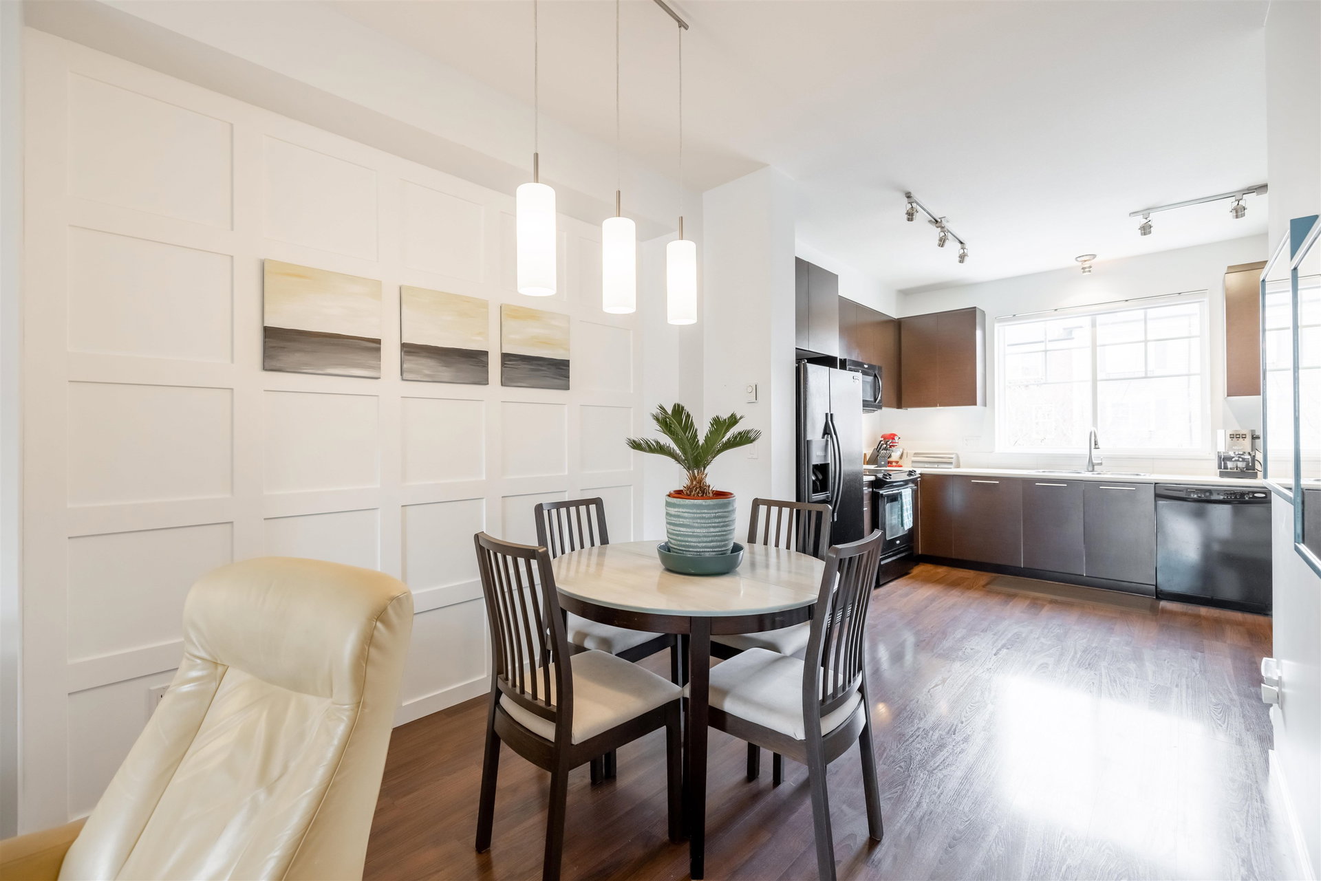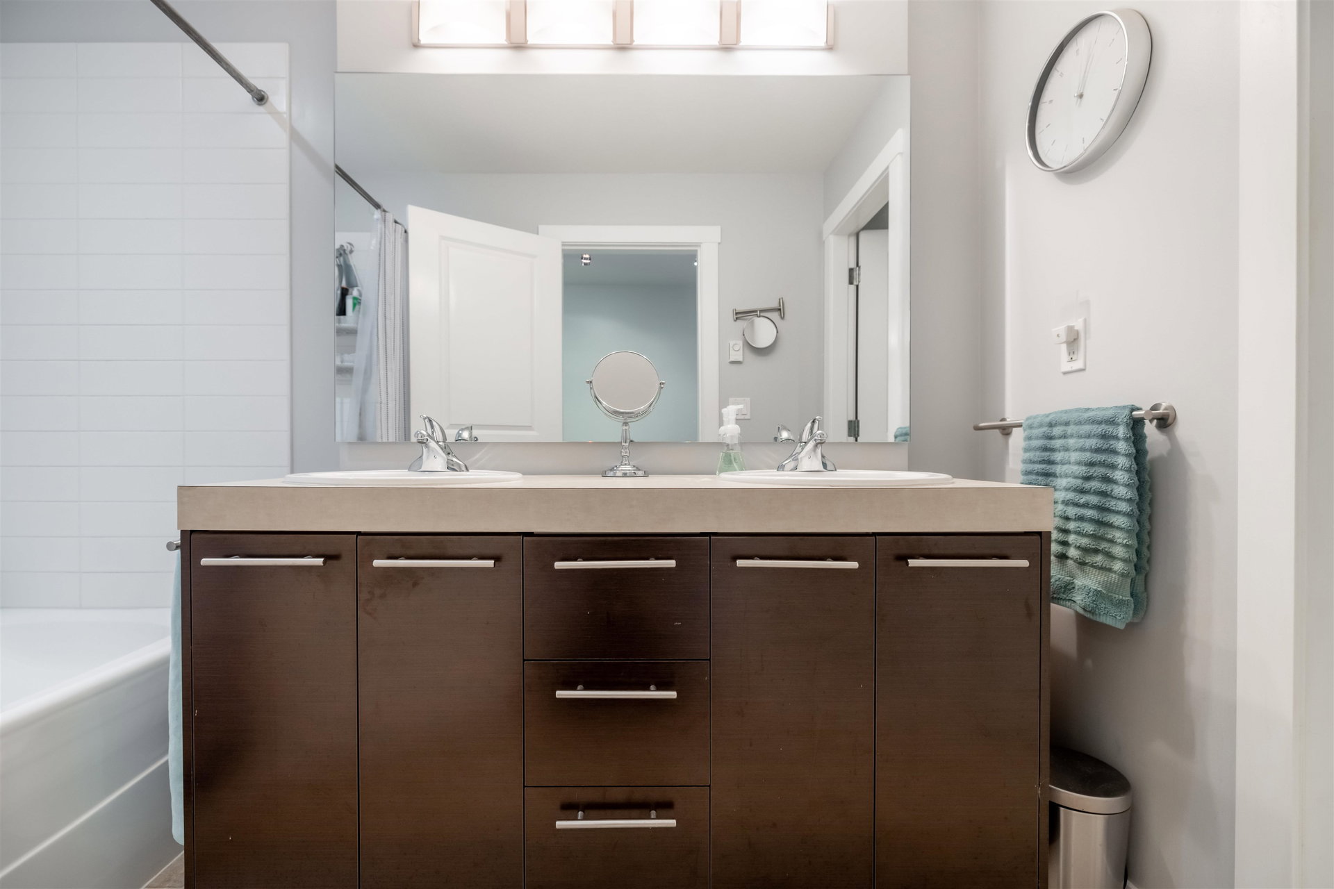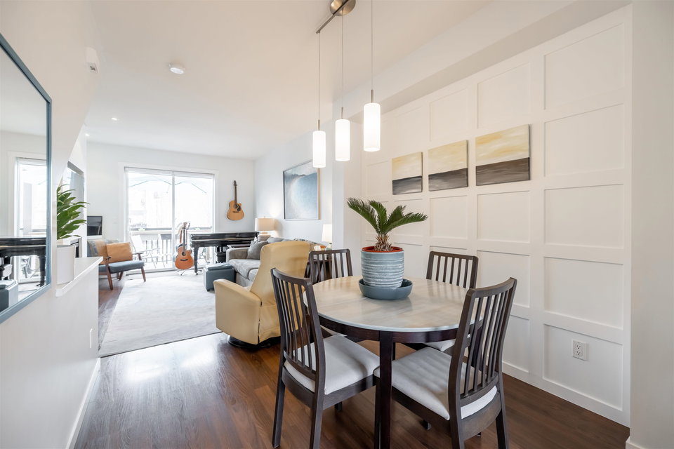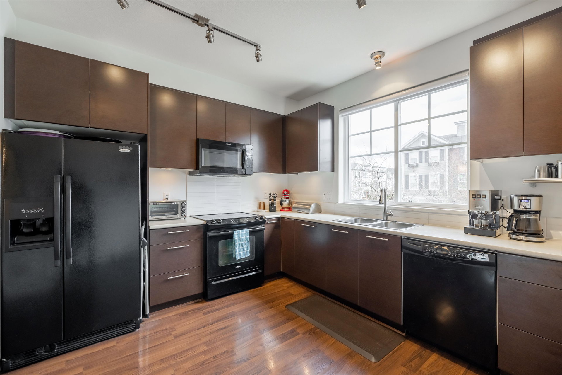 Welcome to Tate in popular Clayton Heights and this immaculate 2 bedroom and den townhome. Stepping into the home you’ll notice immediately how bright it is, the den boasts an included murphy bed and built in workstation, with a handy powder room on the same level. The main level feels spacious due to the high ceilings and open plan living room, dining room, and kitchen. The owners enjoy the patio year round. Upstairs you’ll find two large bedrooms, a bathroom with twin sinks and toilet room, and updated washer/dryer. The single car garage is complemented by a large parking pad. Clayton’s many amenities are all close by with restaurants, shopping, recreation, parks, schools, transit, and more. Checkout the narrated video tour of the home and the neighbourhood in the Virtual Tour URL.