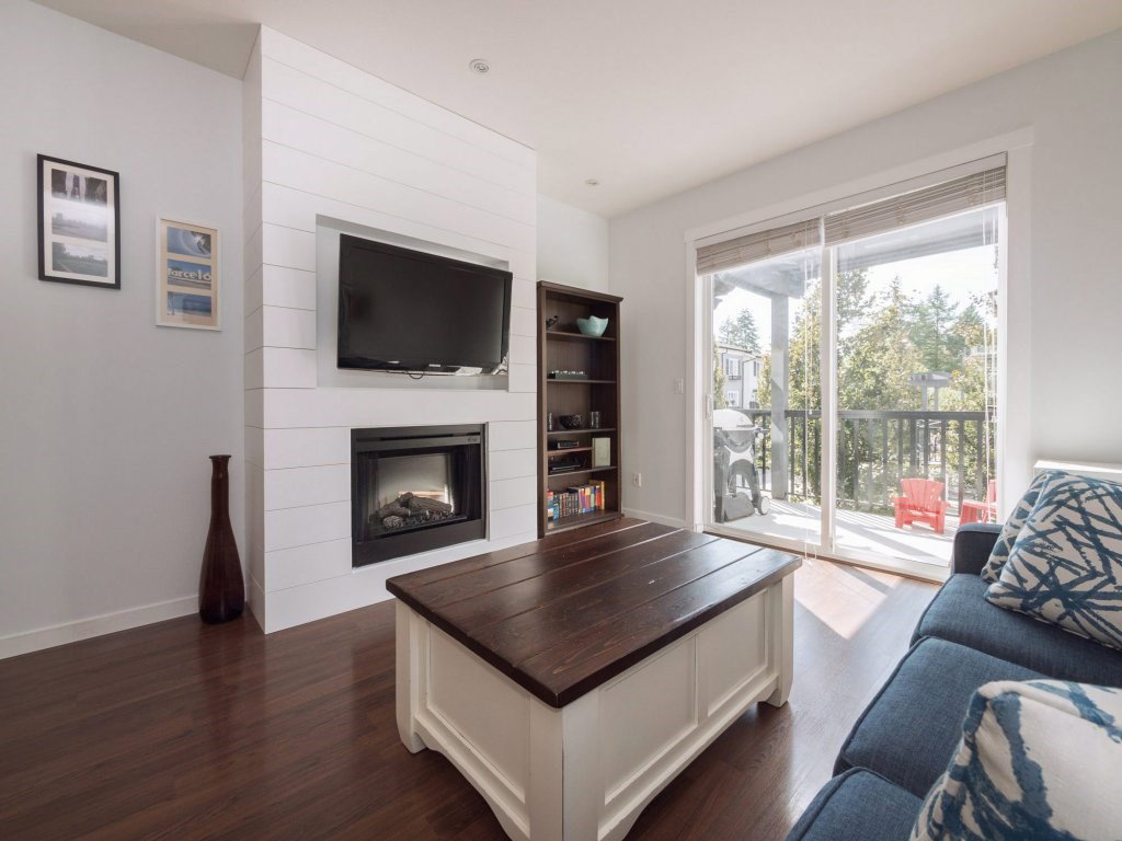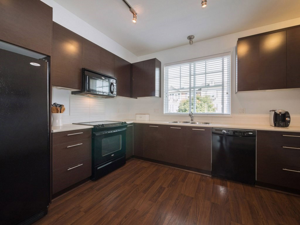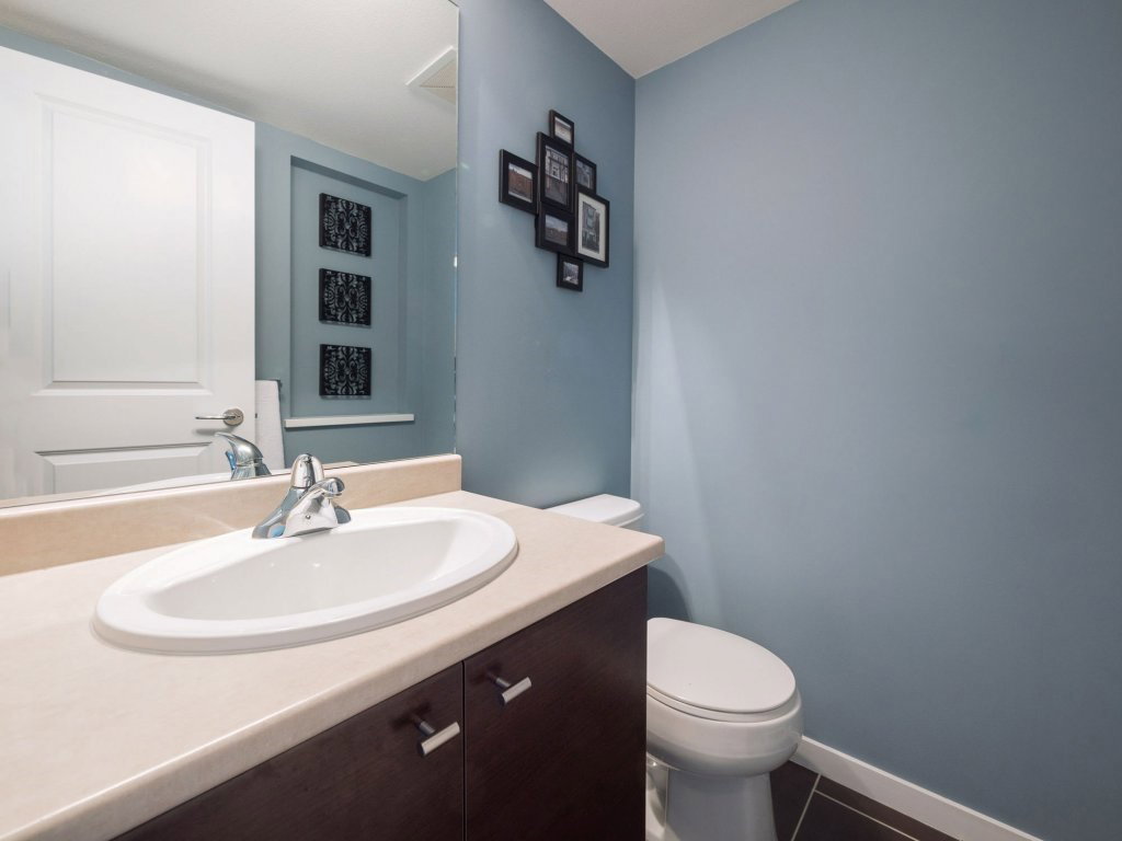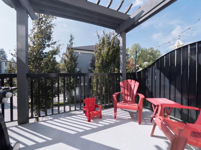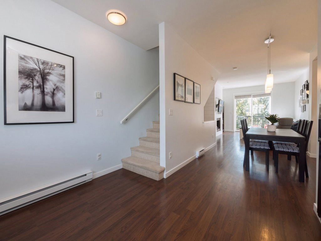 Tate by Mosaic Homes! This bright spacious townhome offers 2 large bedrooms plus den and 2 bathrooms and has been well cared for. Thoughtfully planned layout with 1196 sq.ft of living space! Gorgeous Wainscoting feature wall in large dining area, and new shiplap accent wall in living room. Den off main entrance that could be used as an office and powder room on the same level. Good sized private deck off living room. Nothing to do but move into this great unit that is close to all amenities in a family friendly complex!