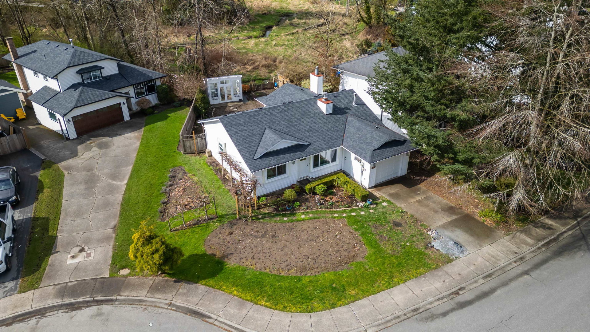 Welcome home to this fully renovated Walnut Grove rancher-a downsizer’s delight or the perfect starter home! Tucked away on a quiet cul-de-sac and backing onto protected greenspace, it’s a real sanctuary. There are so many updates we’ve had to make a separate list available. You’ll see from the pictures that the interior is fully renovated and the roof was also replaced in 2023. Settle in as a 2 bed and den or 3 bed, depending on your needs. The gardens have been fruitful over the years and include an English-style greenhouse in the back. All of Walnut Grove’s amenities, Fort Langley & HWY1 are just minutes away – you truly have the best of country and suburban living. See the home AND neighbourhood in the virtual tour URL.